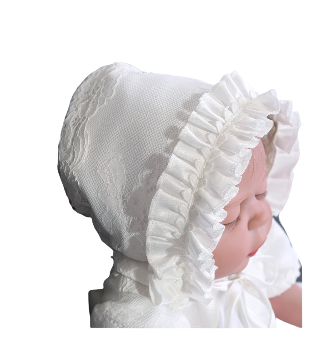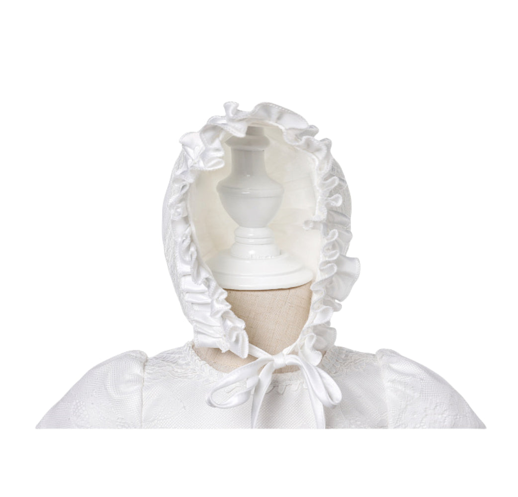 • Matching bonnet included for a complete formal look