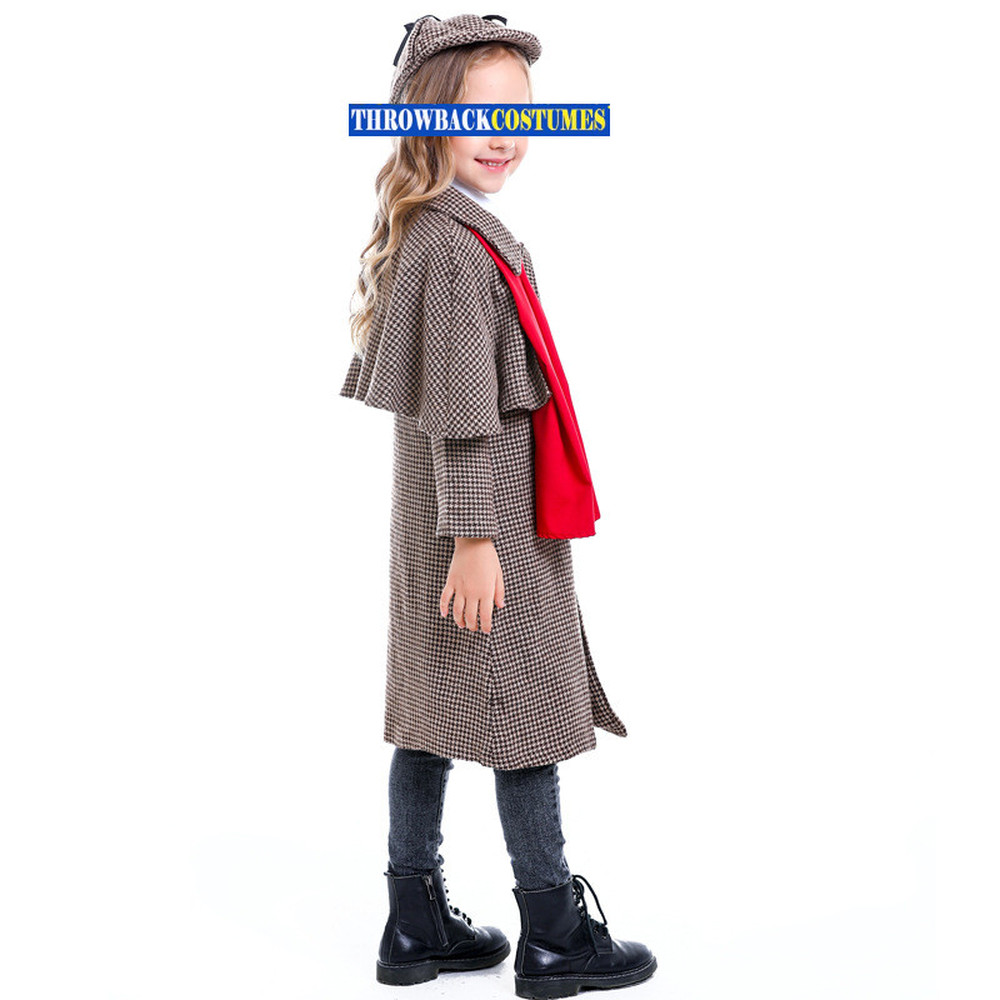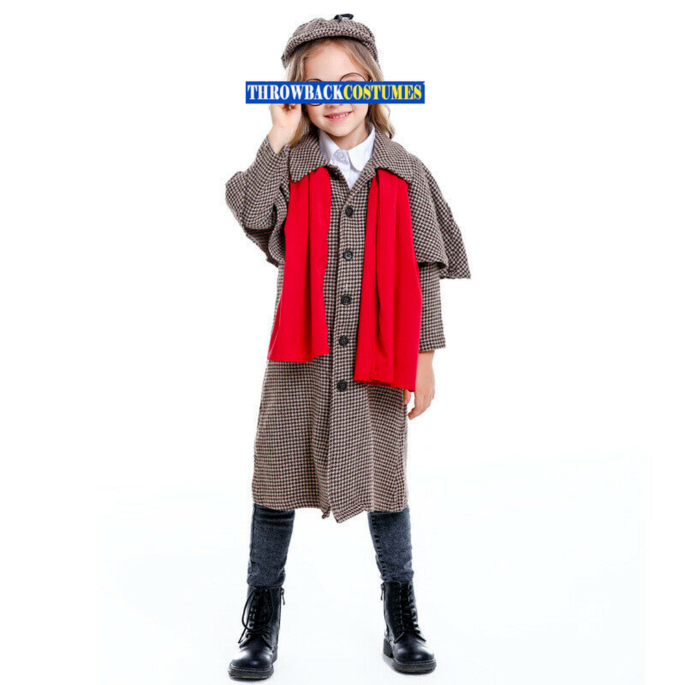 Child Detective Costume Boys Girls Book Week Cosplay Coat + Hat + Glasses