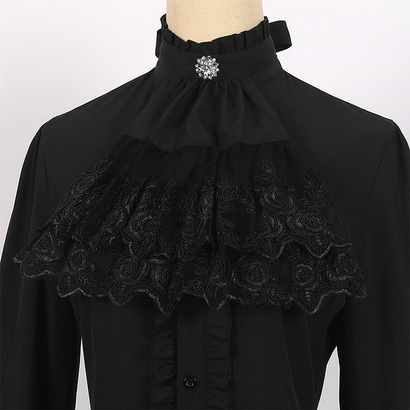 Detachable Collar, Fitted with Back Lacing, Ruffled Women's Victorian Era Vintage Blouse