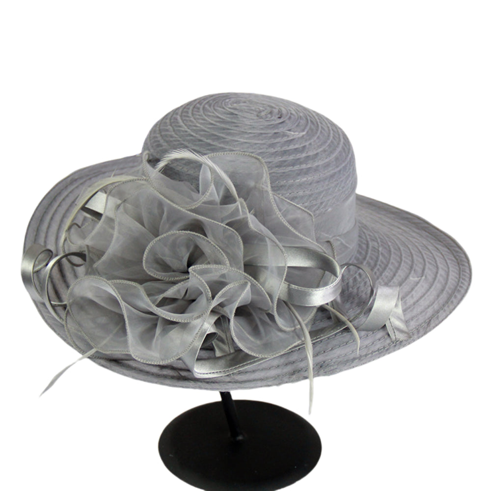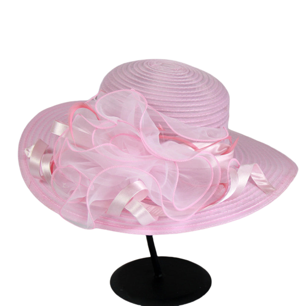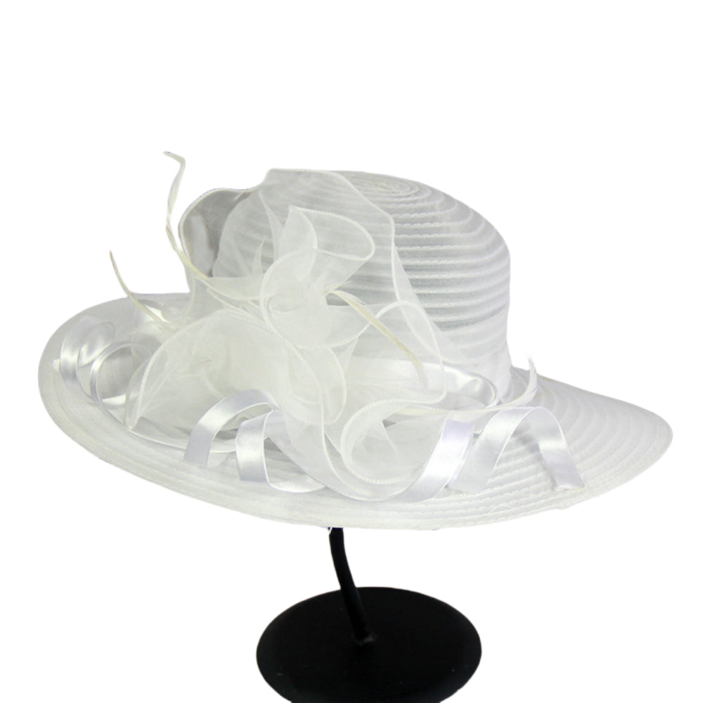 This elegant wide brim organza sun hat blends feminine charm and practicality for spring and summer styling: