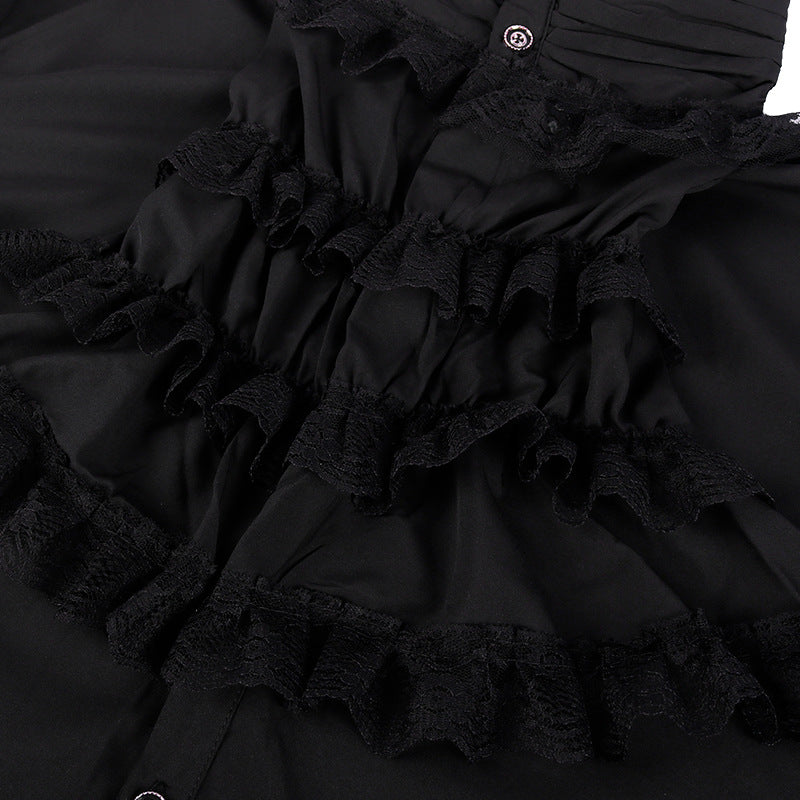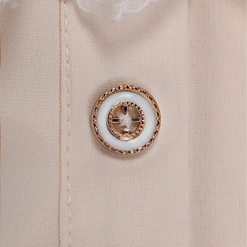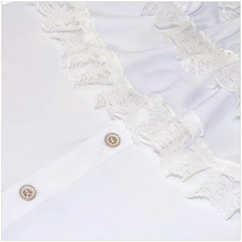 - This shirt features a soft crystal cotton fabric that is moisture-wicking, keeping you comfortable and dry. It has a stand-up collar design with ruffled edges, showcasing an elegant and charming demeanor.