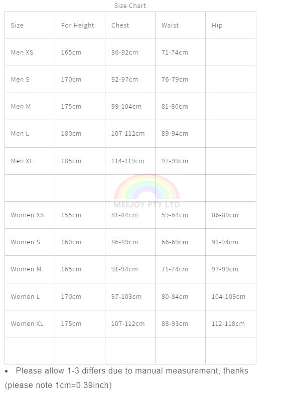 Manual measurement may vary by 1–3 cm (1 cm ≈ 0.39 in).