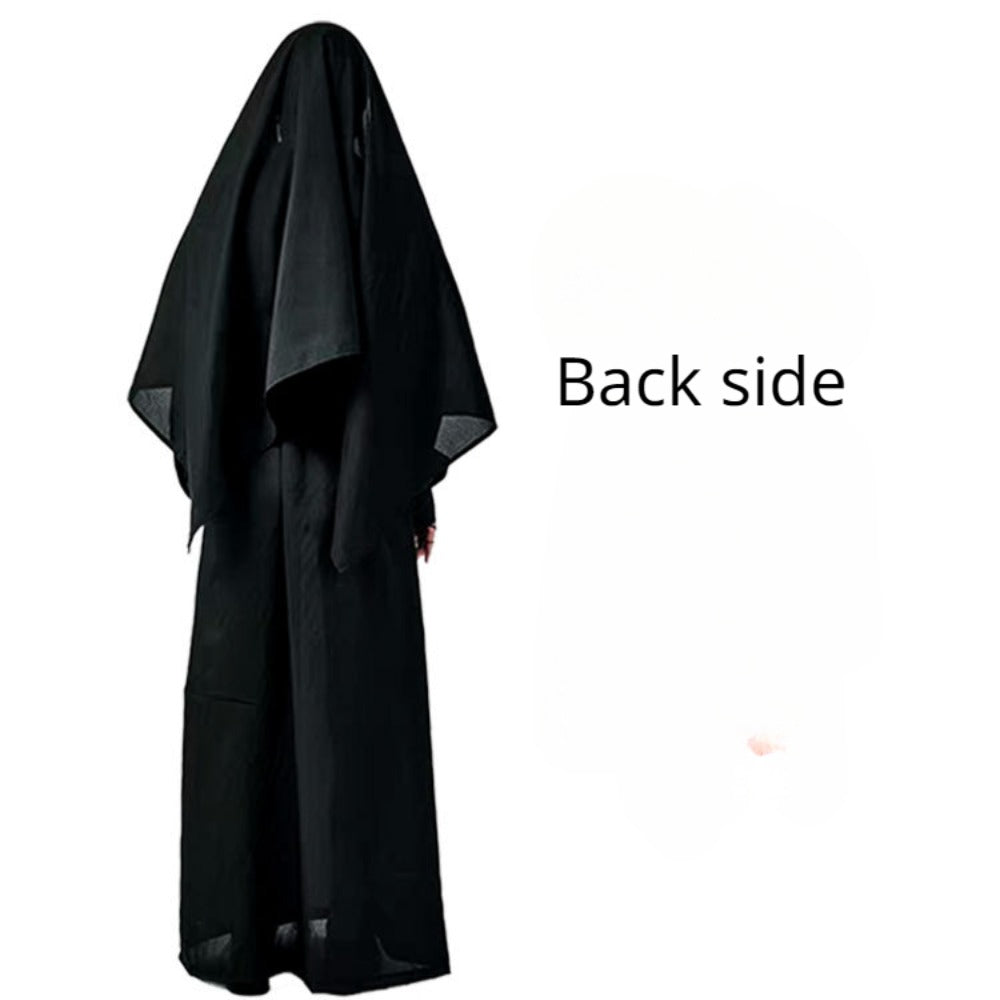 - Embrace the terror with The Nun Ghost Sister Cosplay Dress. This costume lets you become the haunting Sister Veda from the horror realm. Perfect for Halloween and pastor cosplay, it's a spine-chilling choice for your next event.