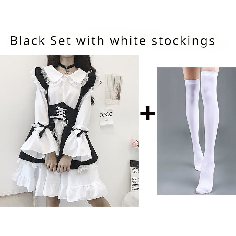 - Indulge in the charm of Japanese crossdressing fashion with our Lolita Distinguished Dress. This unique ensemble, featuring long sleeves and a short skirt, combines traditional Japanese aesthetics with Western-style cosplay, creating a captivating maid costume. Ideal for crossdressing events, cosplay parties, or those looking to embrace the allure of maid and Lolita fashion. Elevate your cosplay experience with this distinctive blend of styles. Order now and step into the world of creativity and charm.