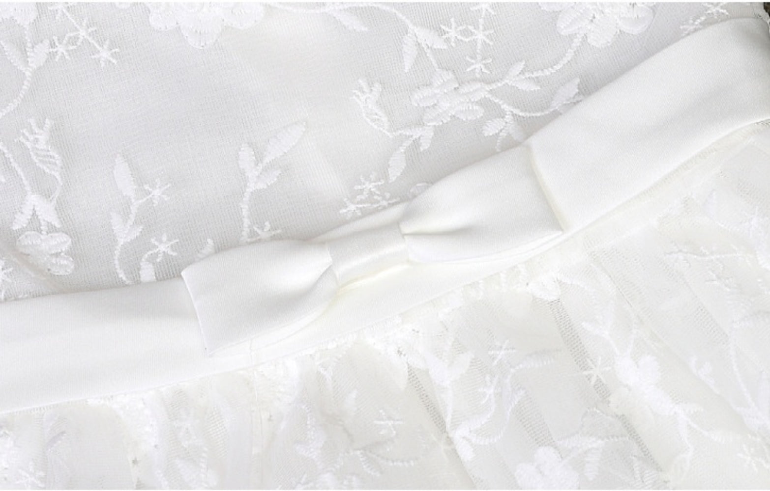 - Satin Bow Waist Detail – Mid-waist satin bow adds a refined and charming accent.