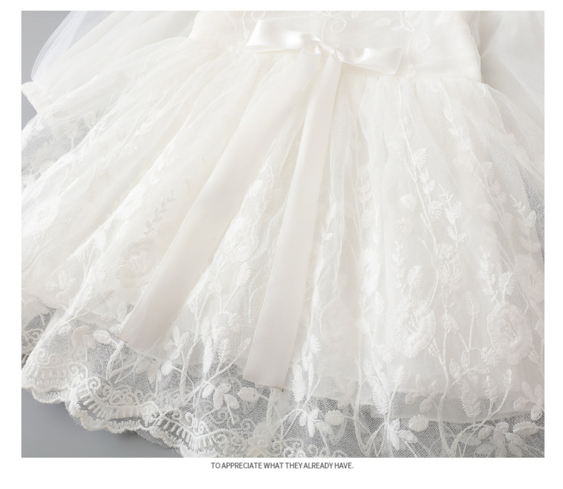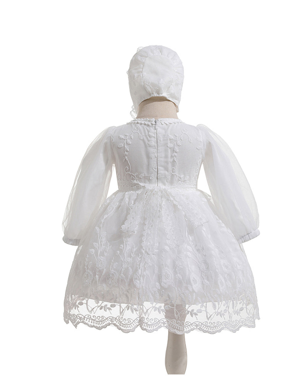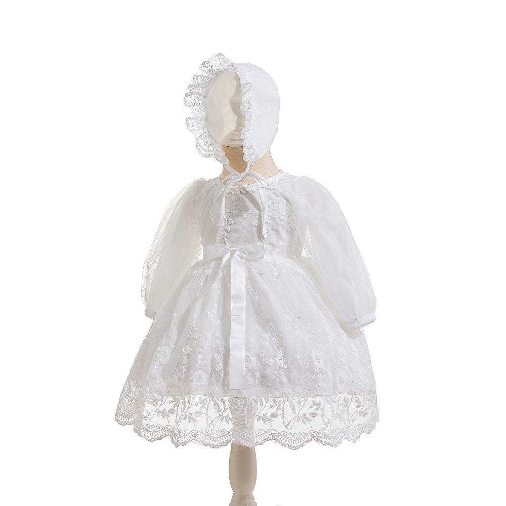 Long Sleeve Baby Girl Christening Dress – Spring Autumn Lace Princess Gown