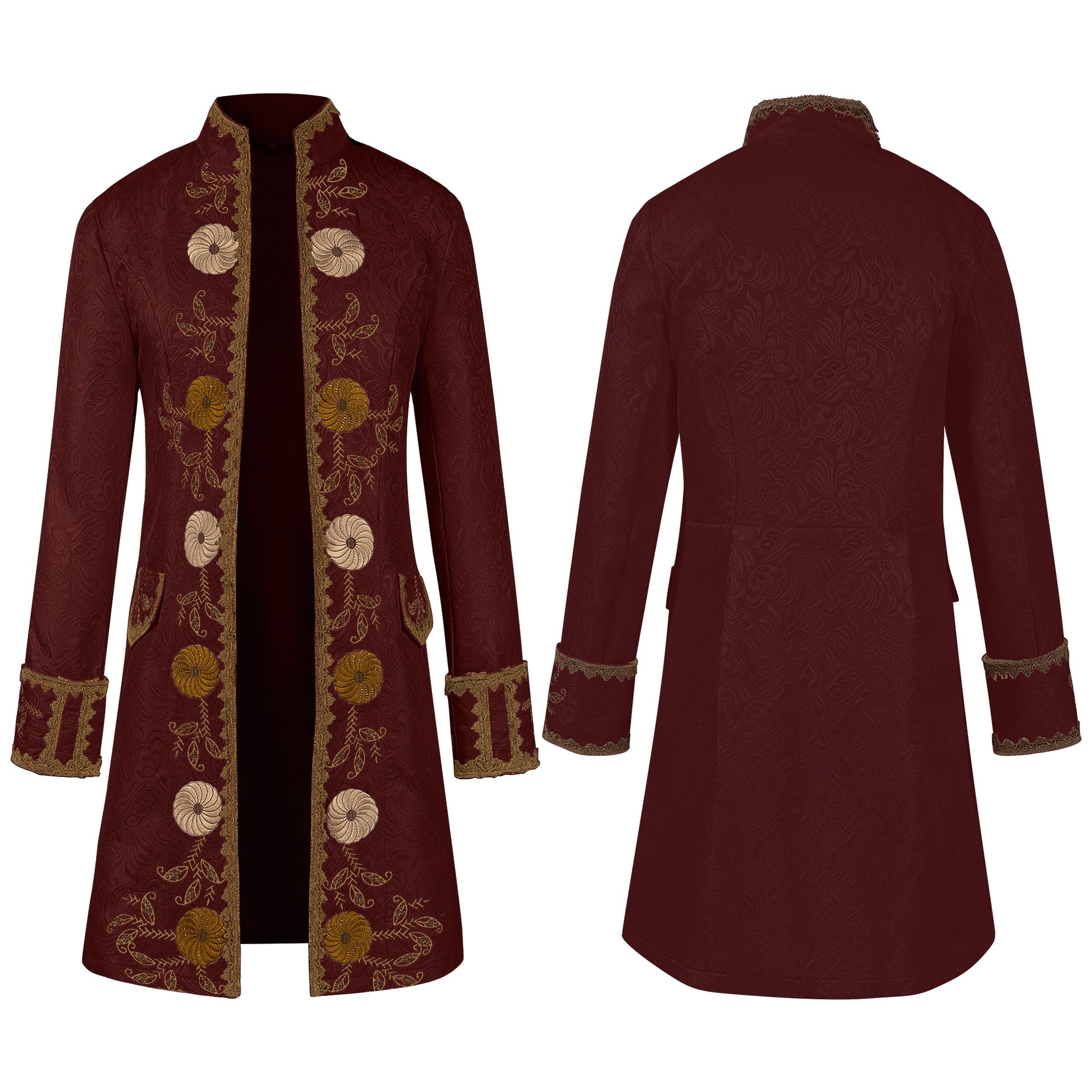 Luxury Vintage Jacquard Coat Medieval Retro Costume Steampunk Retro Men's Uniform Stand-up Collar Classic Bridgerton