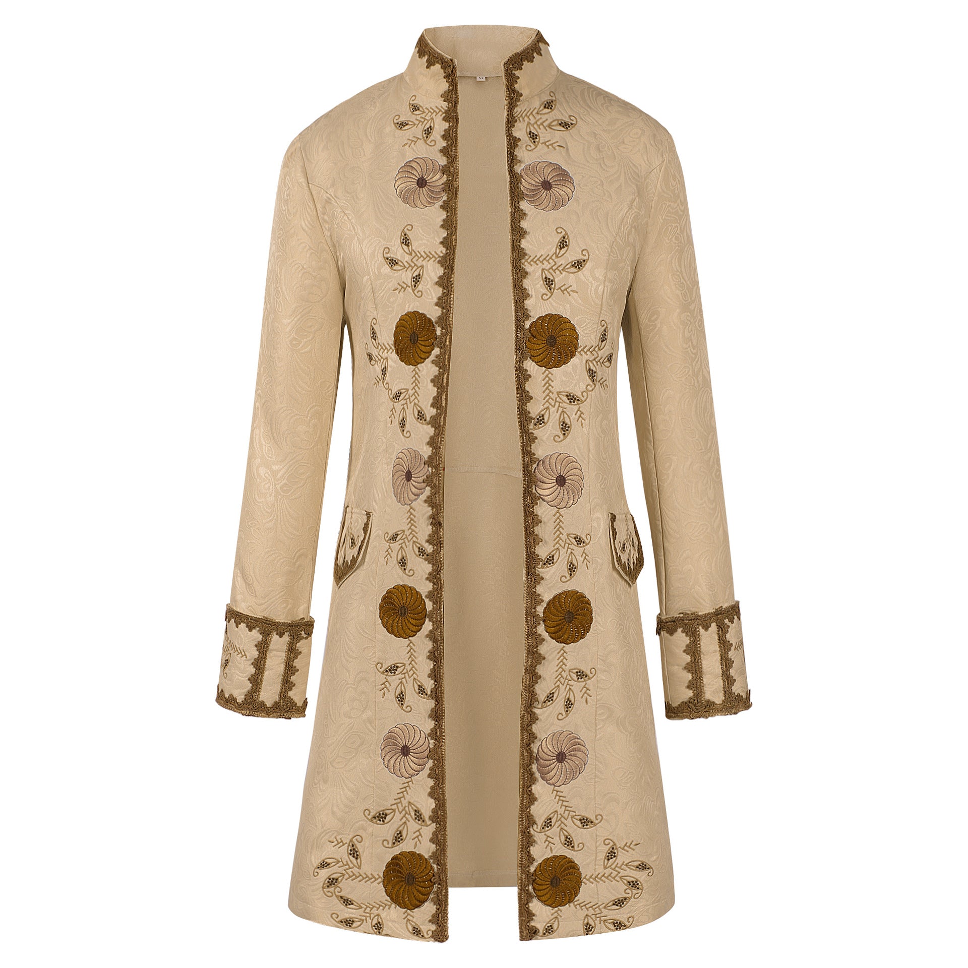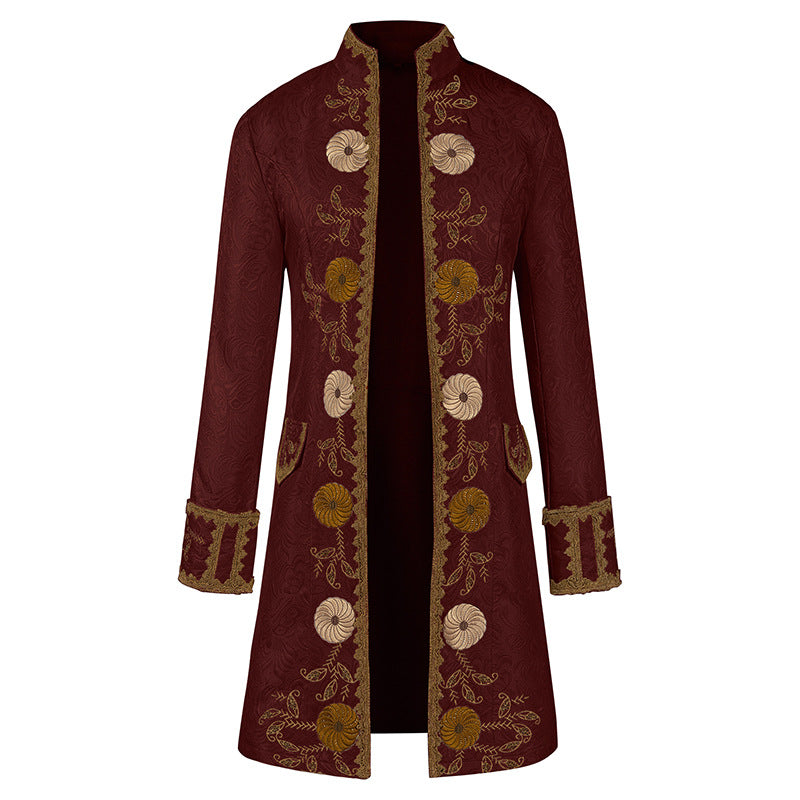 Channel timeless nobility with this luxury vintage jacquard coat. Crafted in a rich, textured brocade with a stand-up collar and clean lines, it delivers a refined medieval–Regency silhouette that suits Bridgerton, Victorian and steampunk-inspired looks.