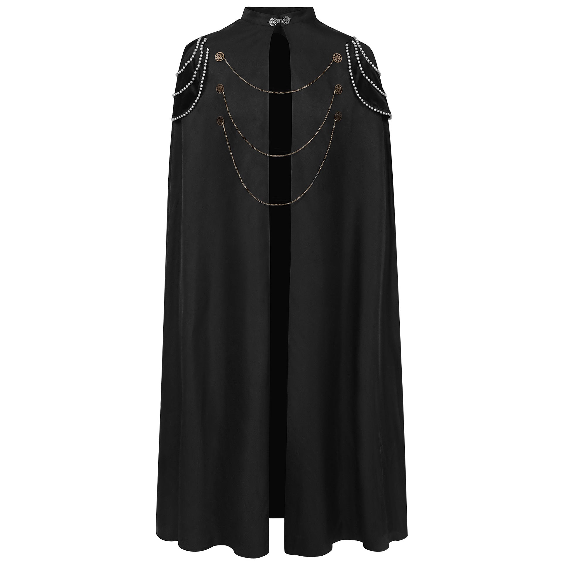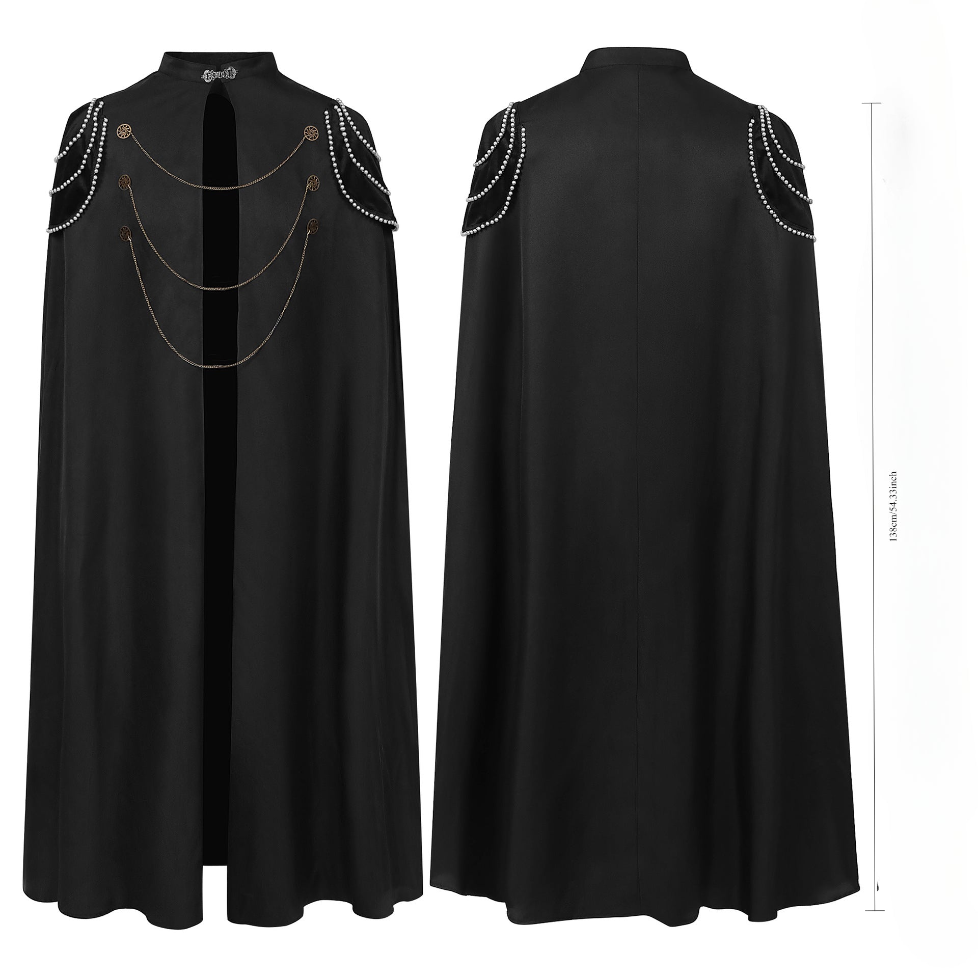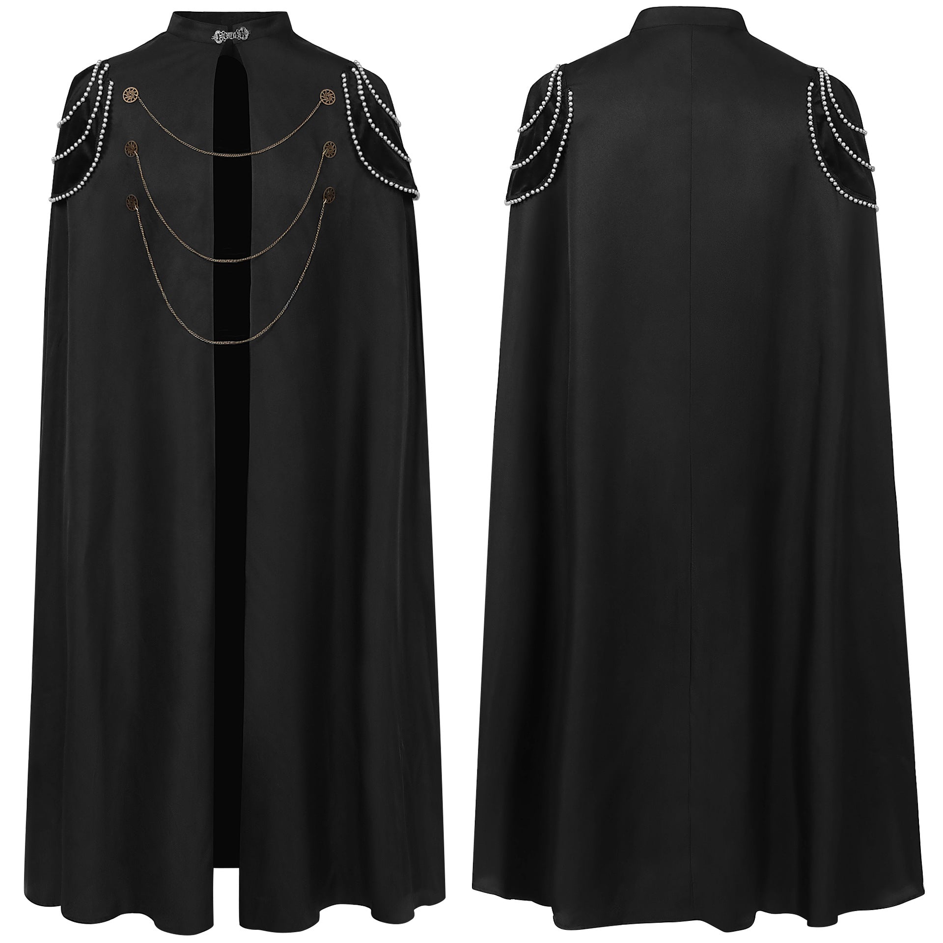 - Step into the grandeur of the past with our Medieval European Royal Cloak, featuring padded shoulders, vintage beaded details, gear chains, and a hood. Perfect for men and women, this cloak adds a regal touch to any performance or themed event. Order now and embrace the elegance of royal attire with this stunning hooded cape.