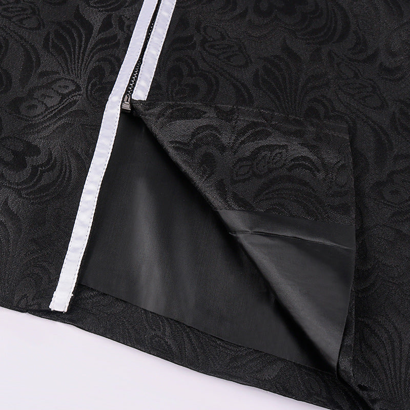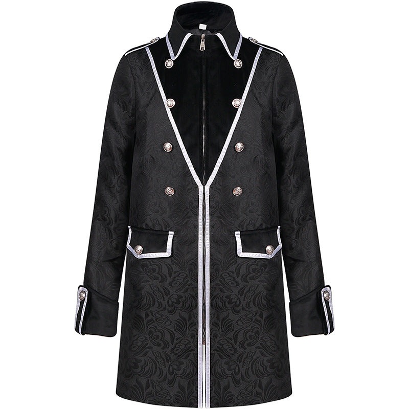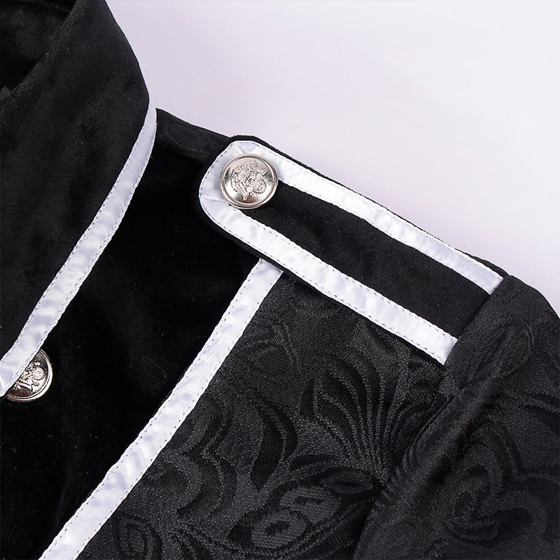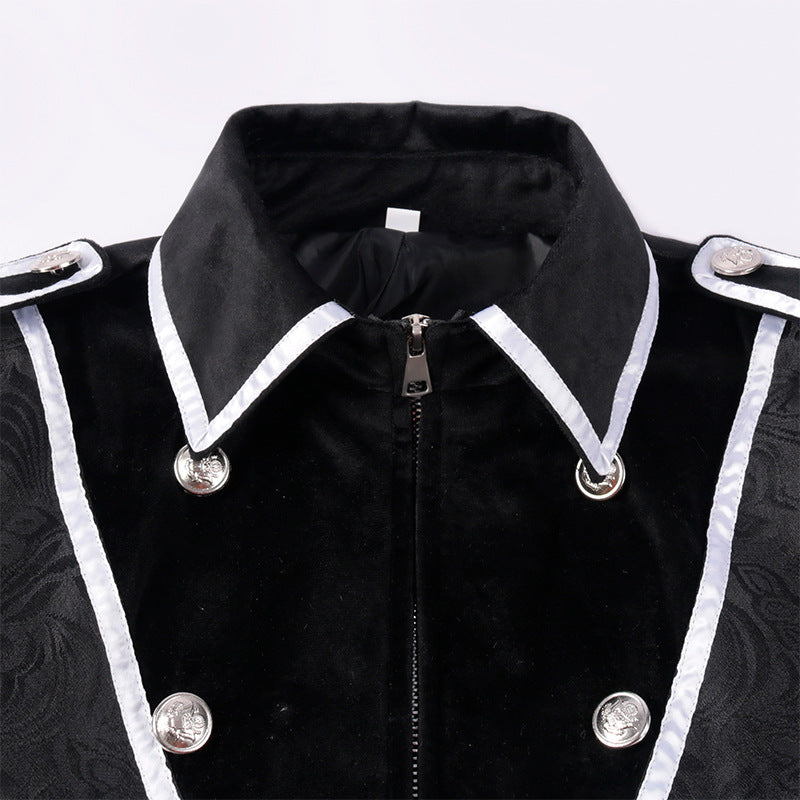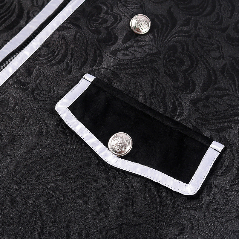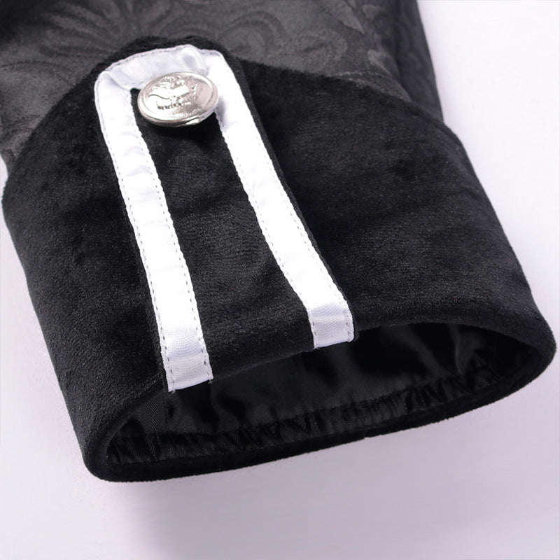 Medieval Men's Fashion Retro Coat with Stand Collar and Brocade Design Velvet Jacket