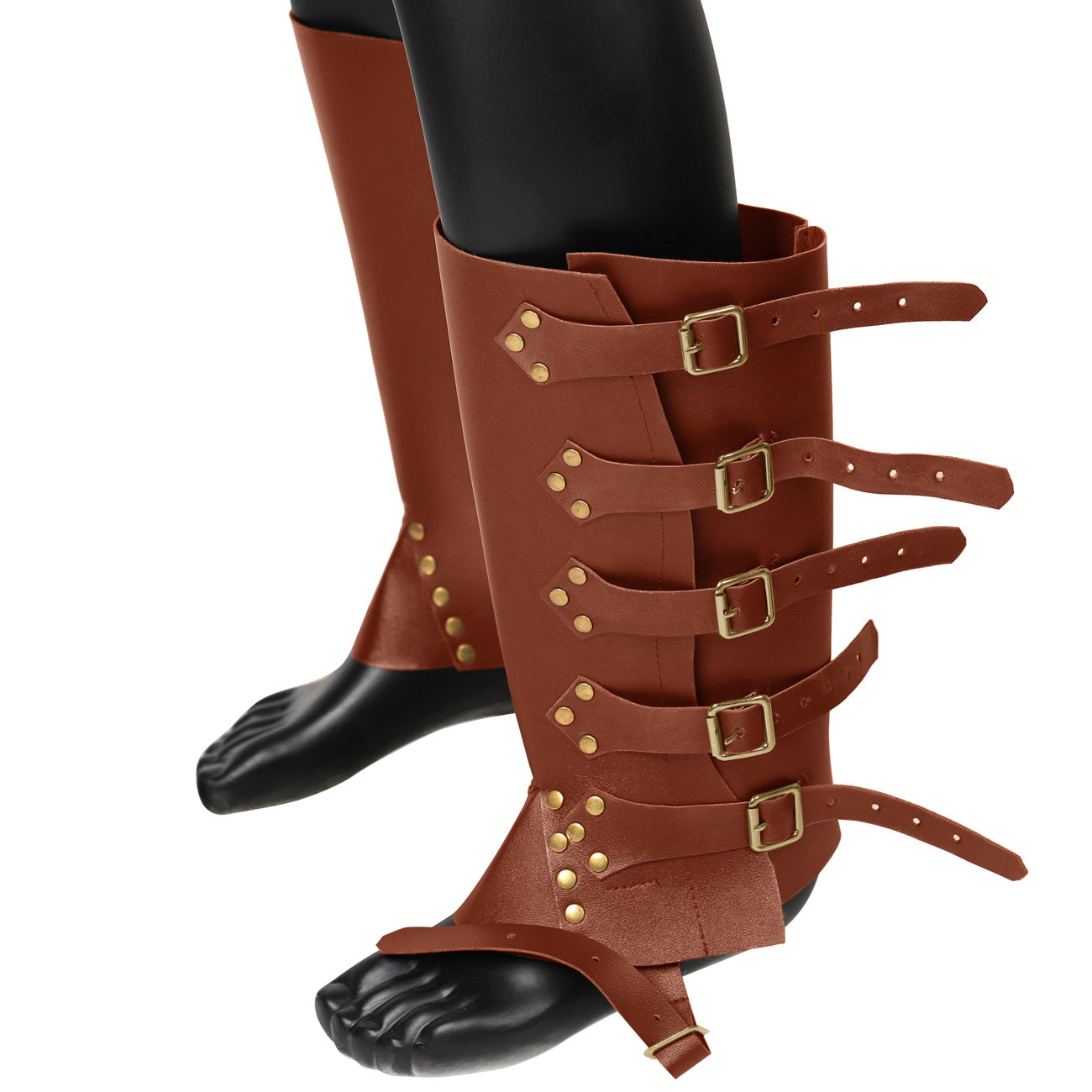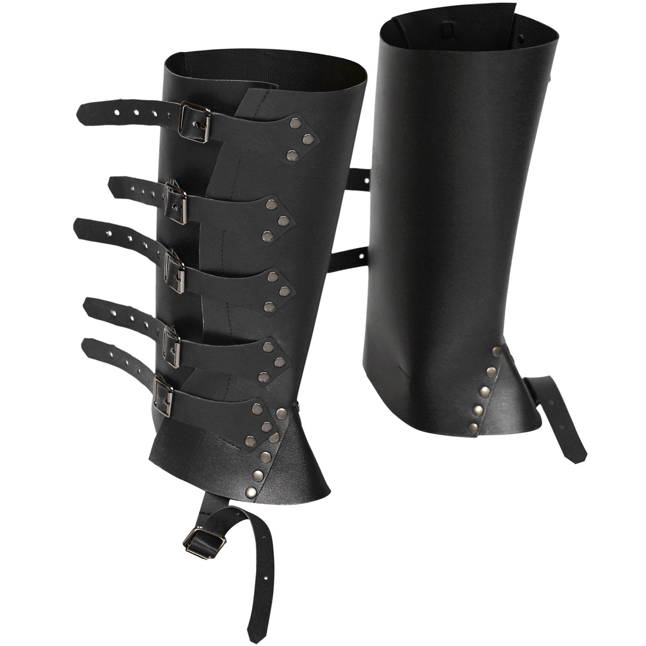 Medieval Renaissance Rider, PU, Leather Punk Shin Guards, Shoe Covers, Boots, Belt Buckle for Knights Crusader
