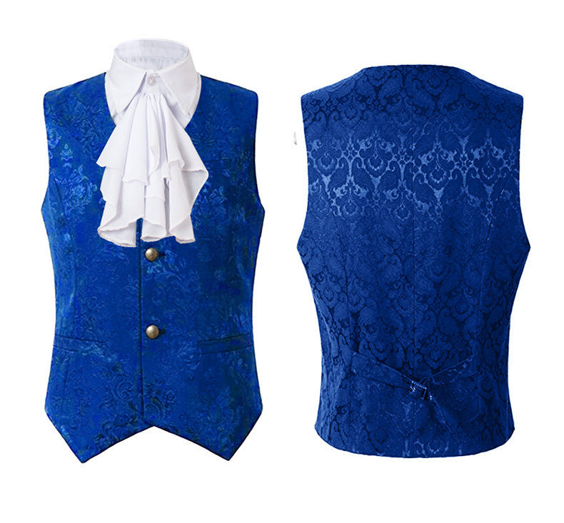 Men Retro Medieval Renaissance Vest with White faux Collar Waistcoat Gothic Steampunk Victorian Costume