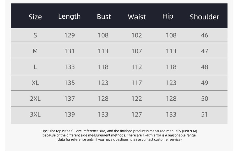 Manual measurement may vary by 1–3 cm (1 cm ≈ 0.39 in). Colors may appear slightly different due to lighting and monitor settings.
