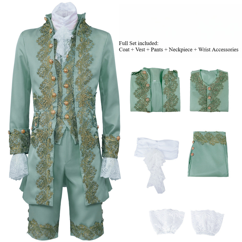 Men’s Court Prince Costume Medieval Retro Cosplay Embroidered Suit Full Set LARP