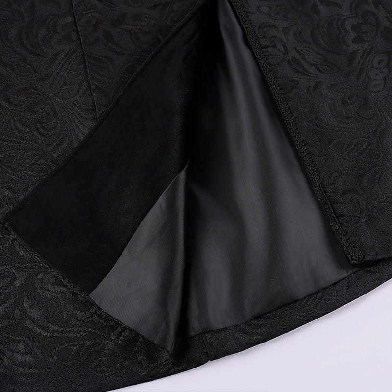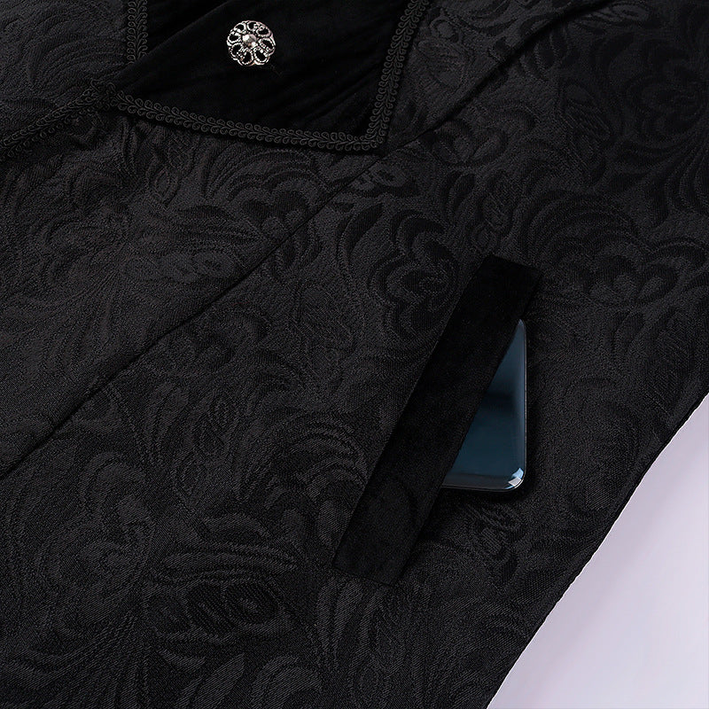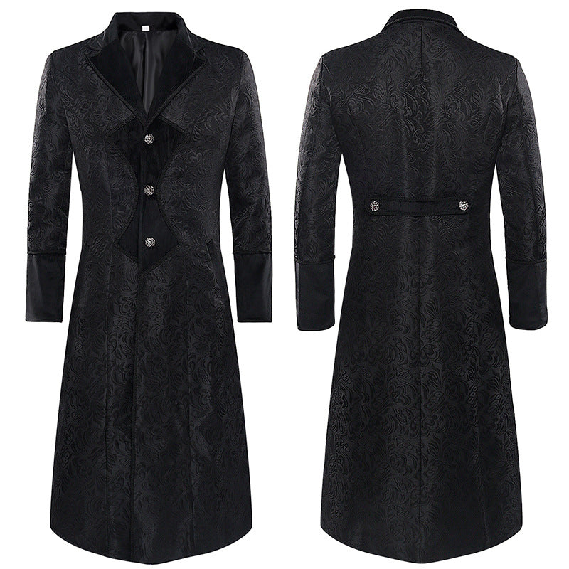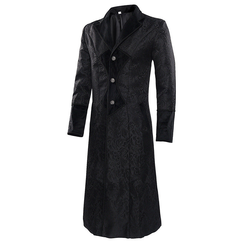 Men Trench Coat Gothic Long Jacket Solid Color Stylish Steampunk Retro Uniform Stand Collar Outfit