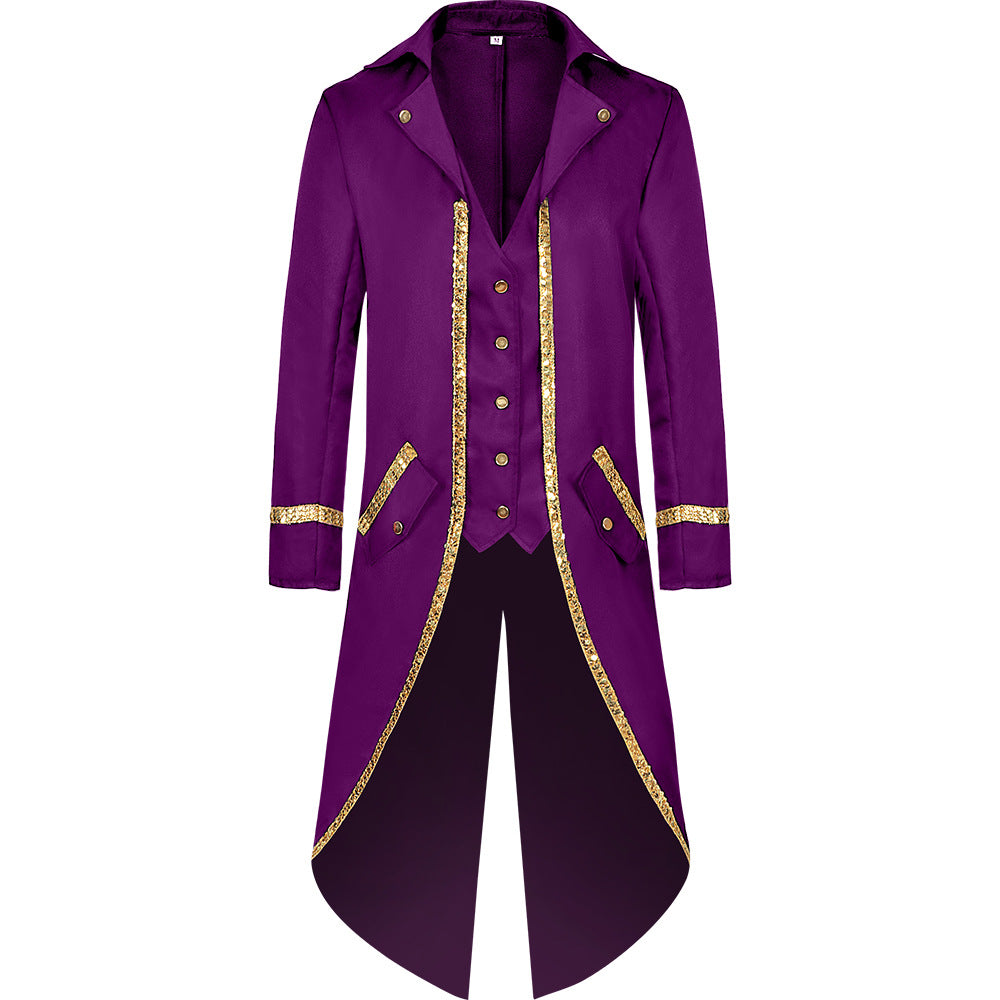 Men Vintage Steampunk Costume Tailcoat Jacket Gothic Victorian Retro Shining Edge Tuxedo Suit