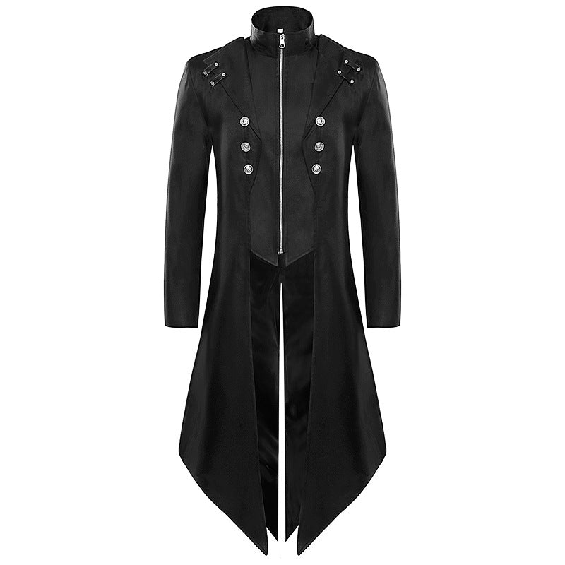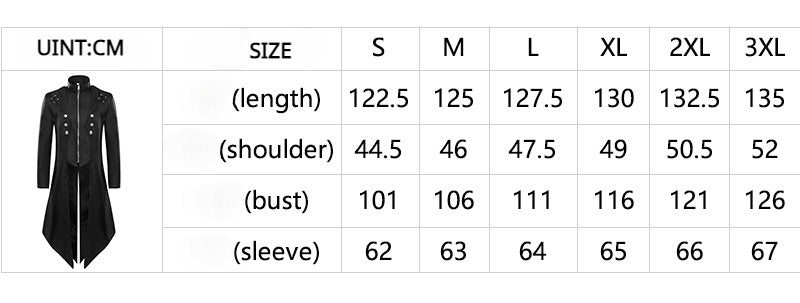 - Elevate your style with this men's medieval vintage tailcoat. With its mid-length design and punk-inspired details, this jacket is perfect for those who want to make a statement. Whether you're attending a themed party or a rock and roll event, this tailcoat will have you looking sharp and unique.