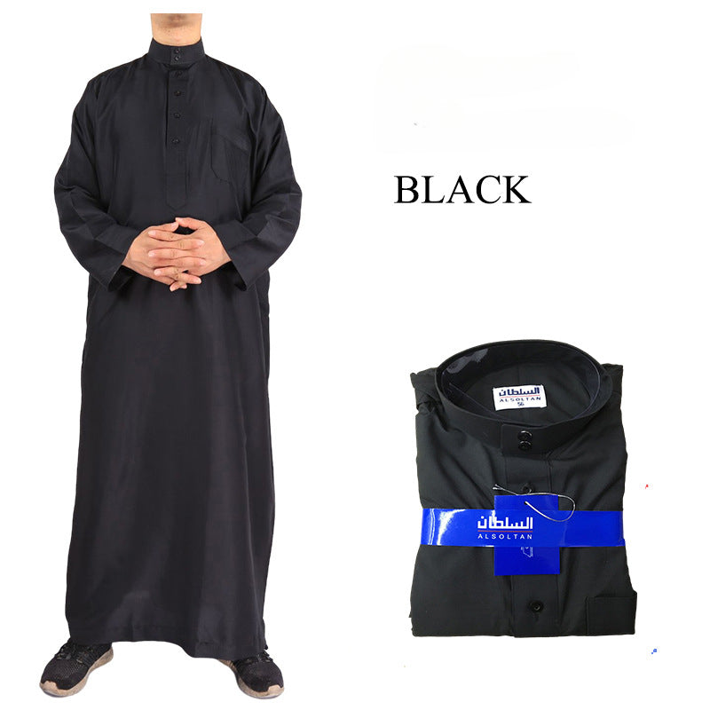 Mens Muslim Clothing Saudi Arab Long Sleeve Thobe Islamic Jubba Kaftan Long Robe Black Bisht