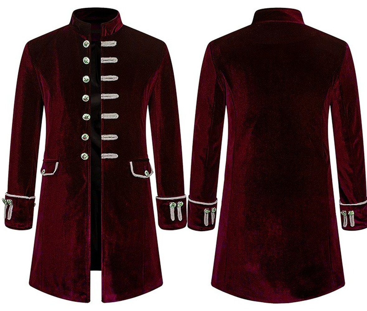 Men's Steampunk Medieval Tailcoat Jacket Gothic Victorian Frock Coat Punk Vintage Velvet Uniform Coat with Stand Collar