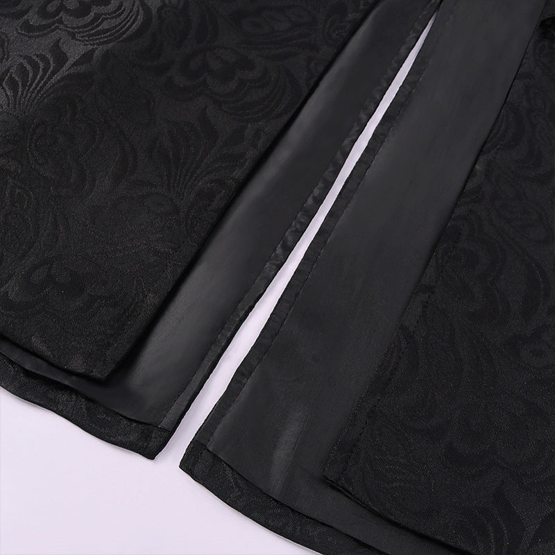 Command vintage elegance with this men’s steampunk–medieval velvet tailcoat. A Gothic Victorian frock silhouette with a stand collar, button closure and knee-length cut makes it a statement layer for cosplay, parties, weddings and stage shows.