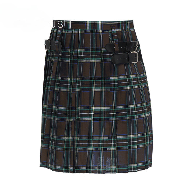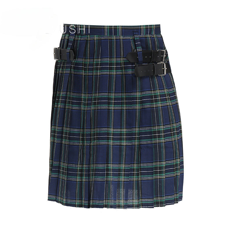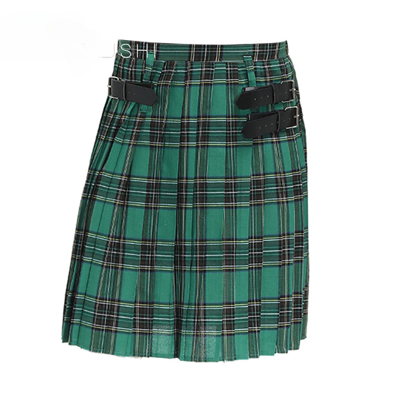 Mens Vintage Kilt Scotland Plaid Pleated Skirts Pocket Scottish Clothing Skirt