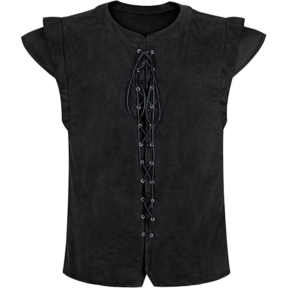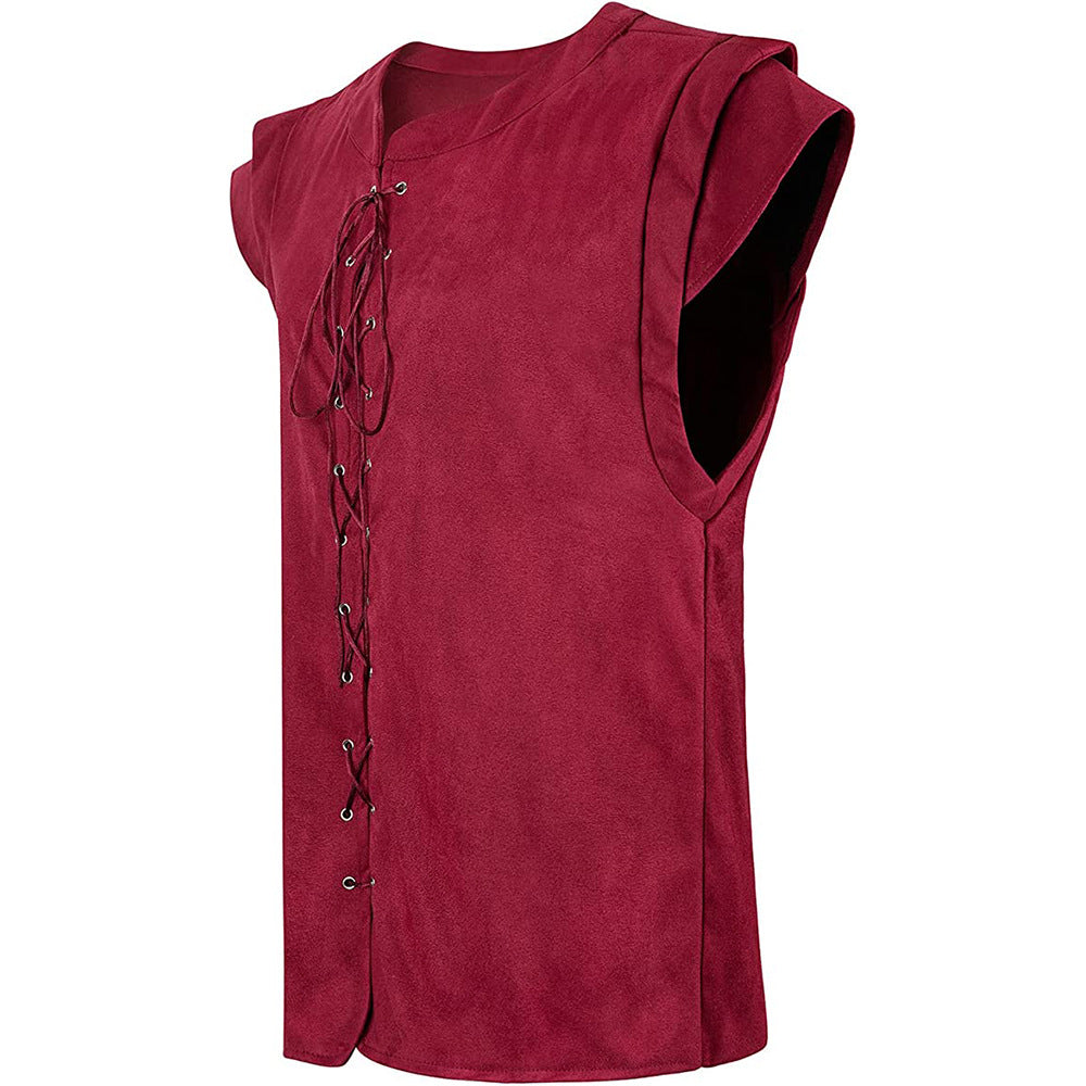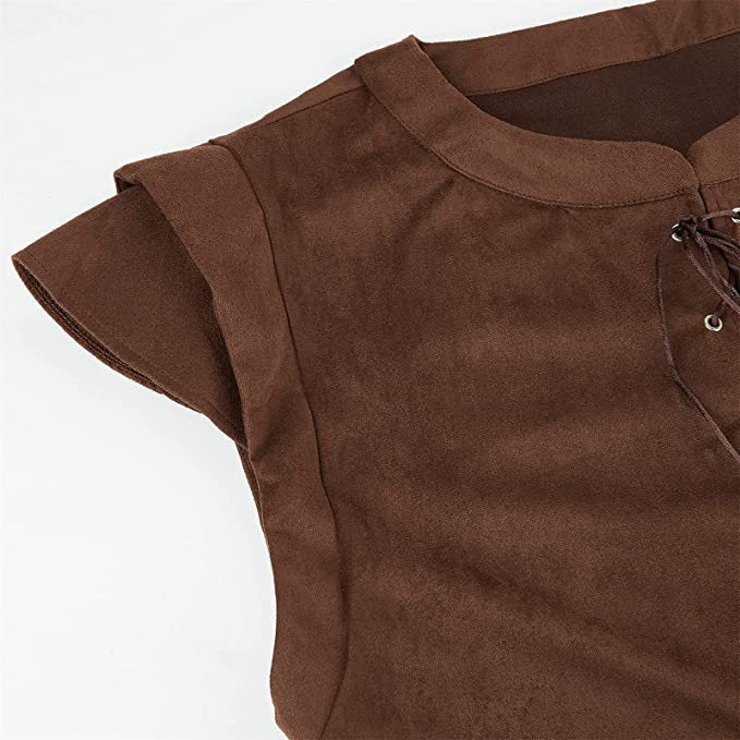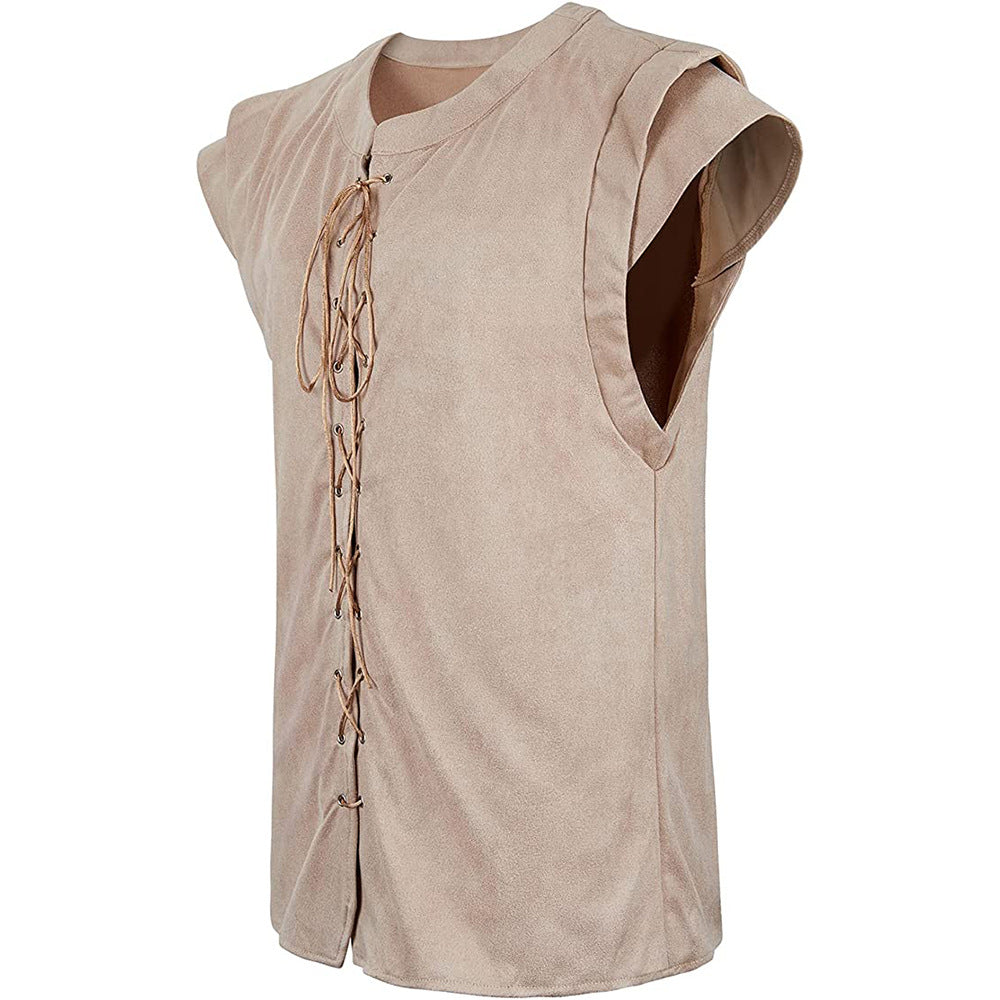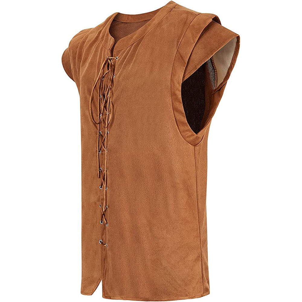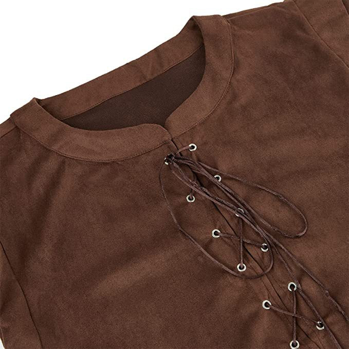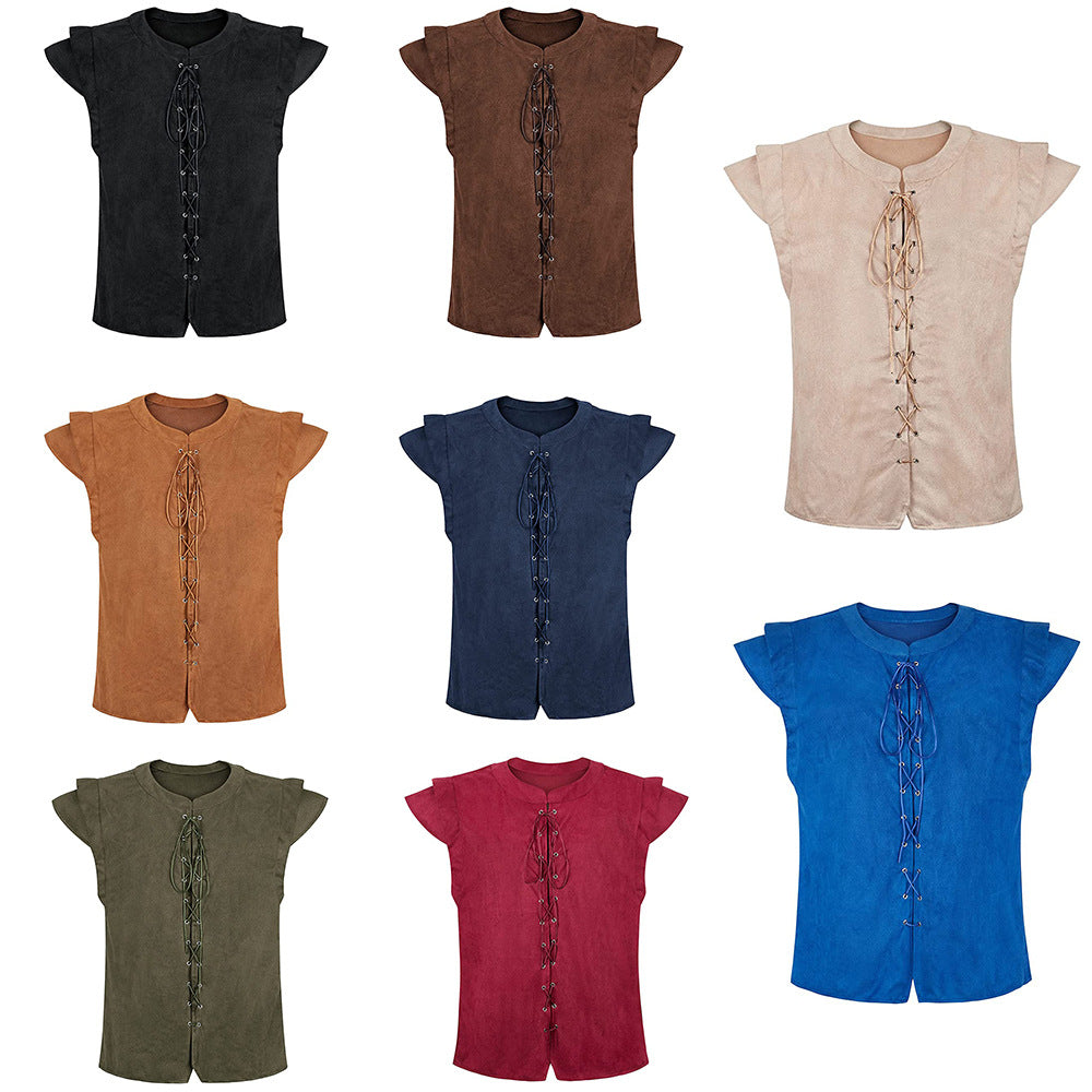 Viking Pirate Vest Plays Lace up Suede T-shirt Halloween Renaissance Cosplay Costumes