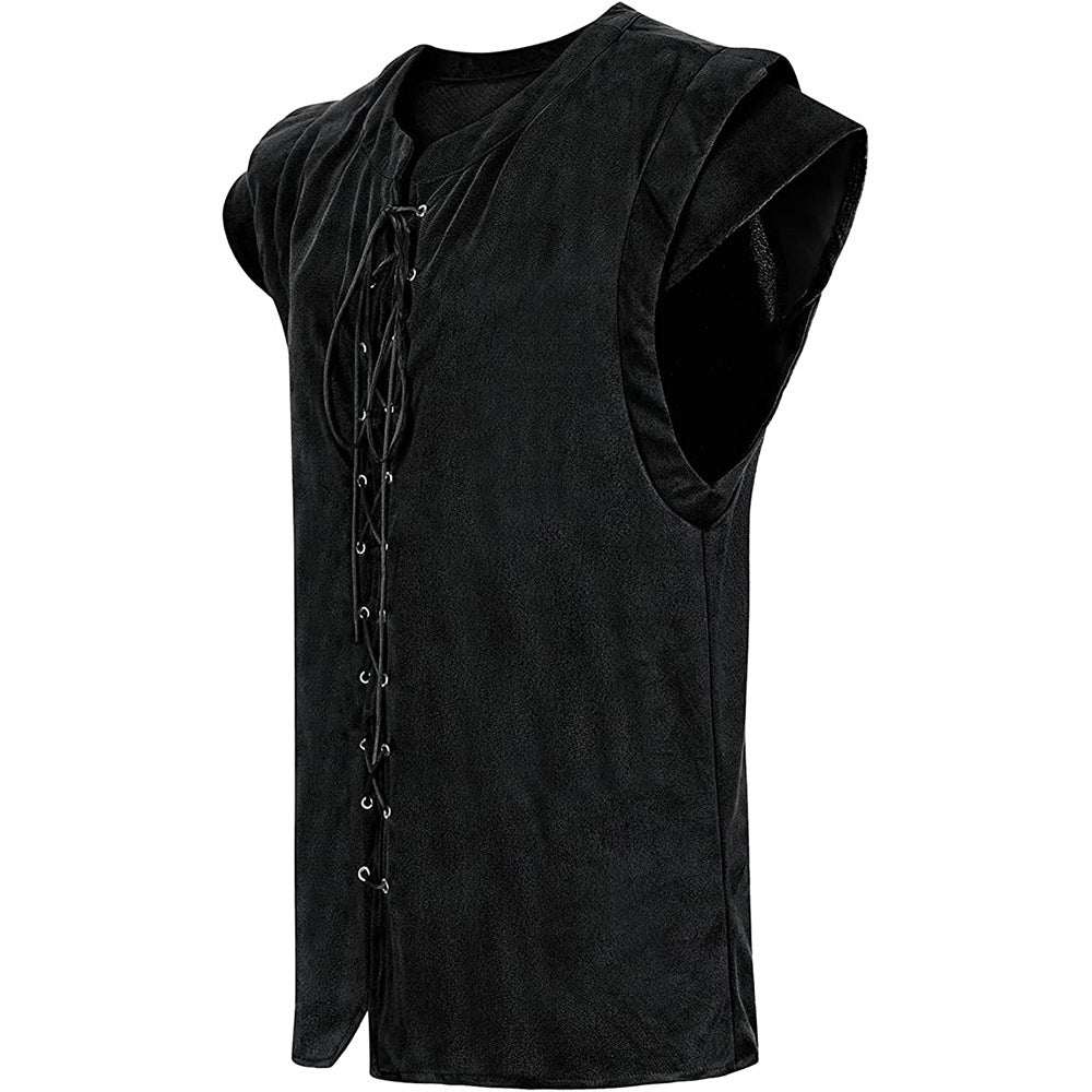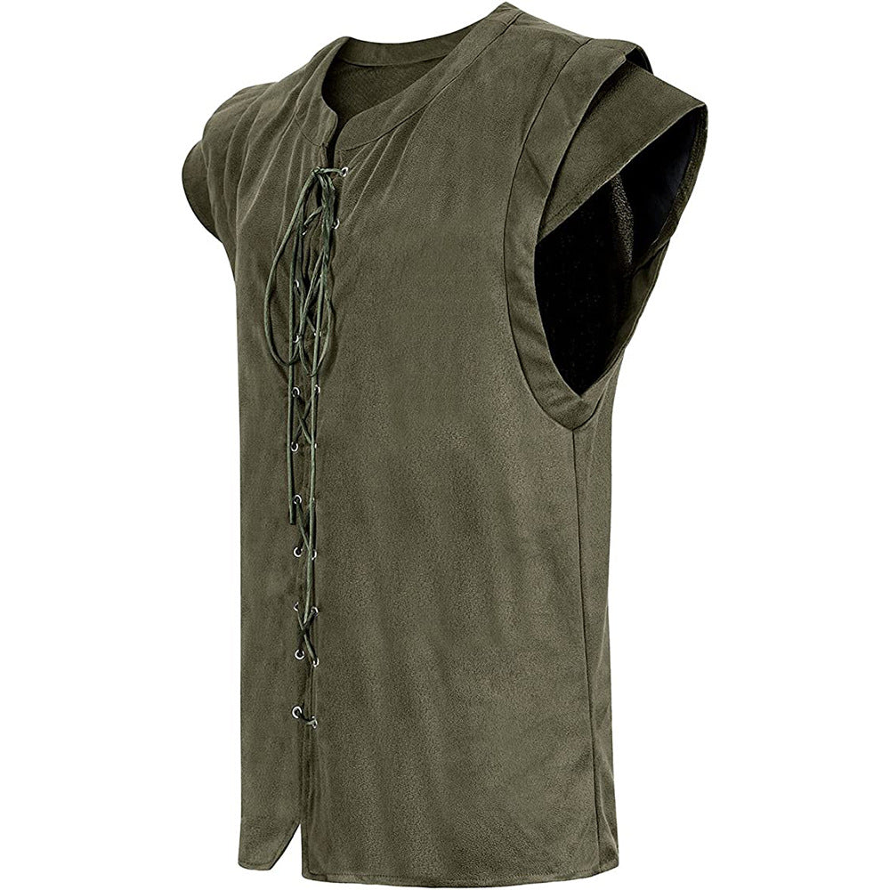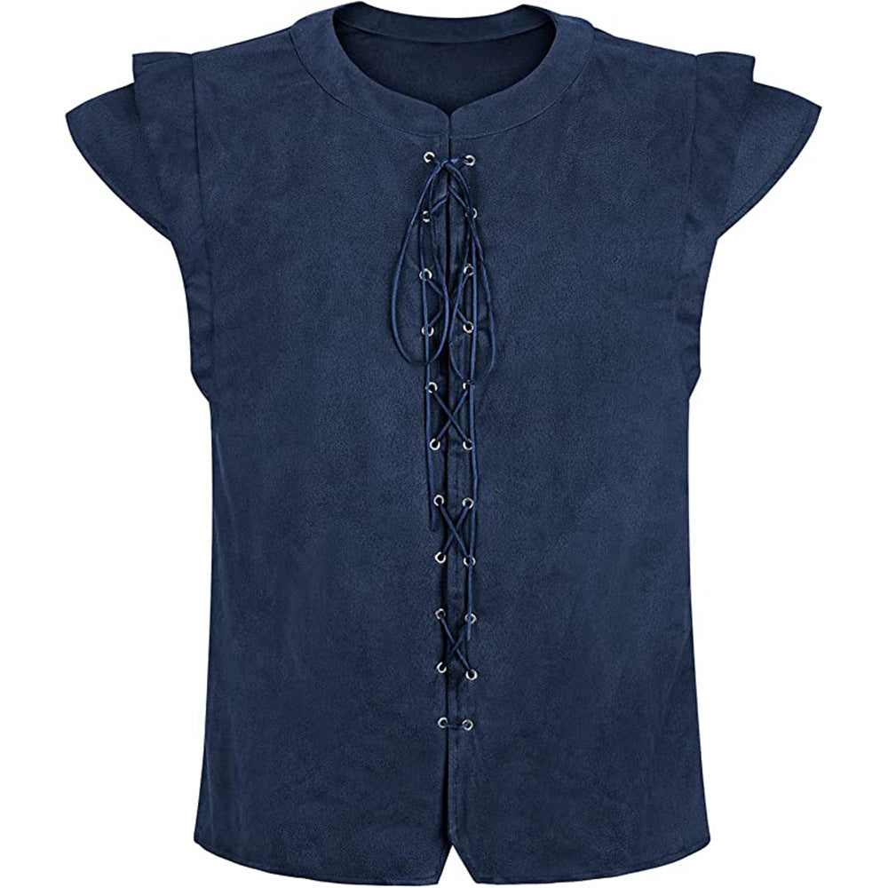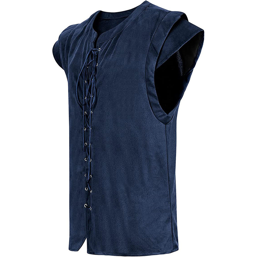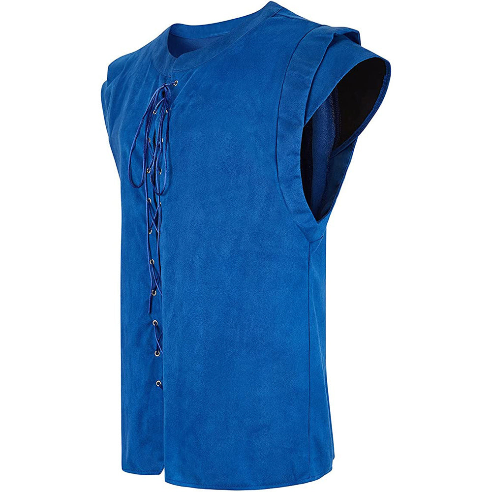 Viking Pirate Vest Plays Lace up Suede T-shirt Halloween Renaissance Cosplay Costumes