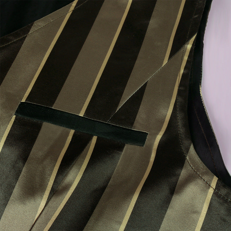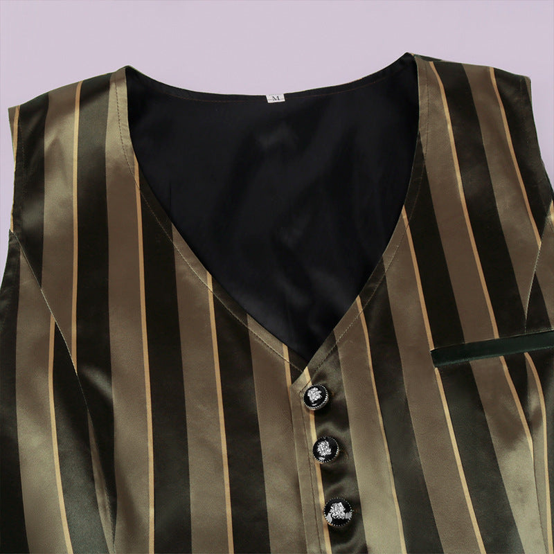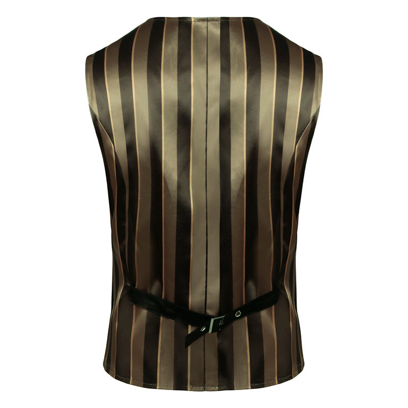 Vintage Men Medieval Costume Retro Gothic Striped Vest Waistcoat