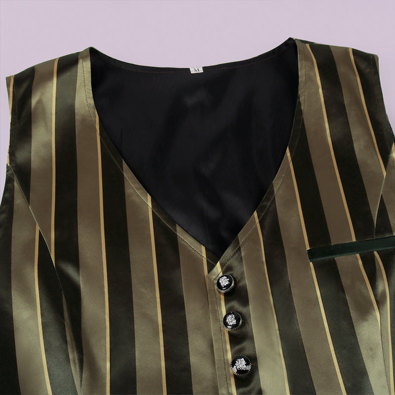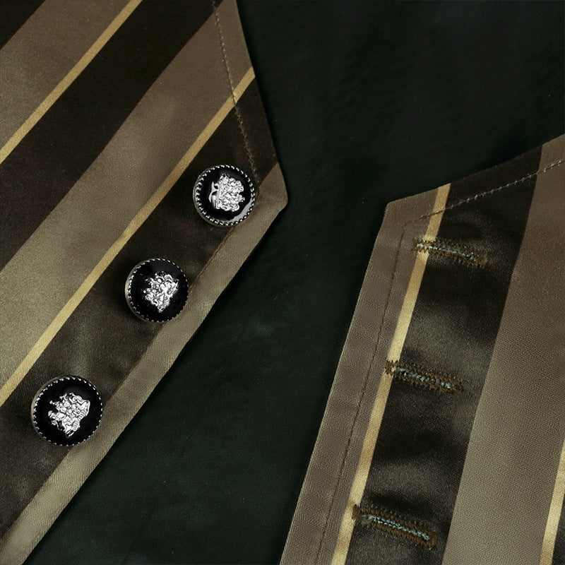 - Elevate your costume with our Vintage Men's Medieval Costume Retro Gothic Striped Vest. This stylish vest adds a touch of authenticity to your ensemble, perfect for themed events or historical reenactments. Order now and stand out with this unique and fashionable costume piece