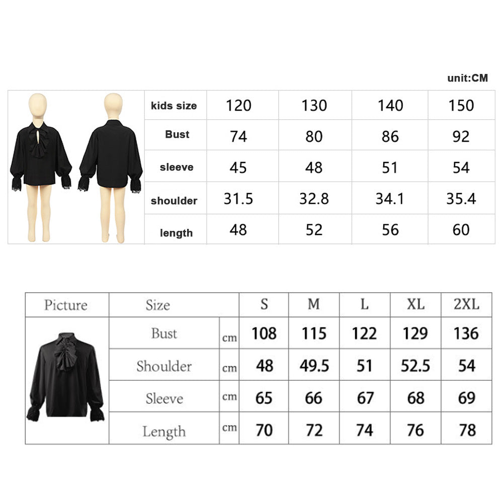 Step into a world of fantasy and drama with this unisex Victorian Pirate Shirt, perfect for all ages. Featuring lace flared cuffs, a ruffle front, and solid retro colors, it adds instant gothic and theatrical flair to any look.
