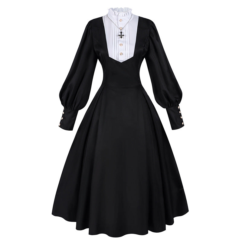 Elevate your Halloween or cosplay look with this women’s priest/sister costume. The retro-inspired dress features a stand-up vibe with coordinated accessories for an instantly polished, character-ready outfit—perfect for parties, stage performances, LARP and themed events.