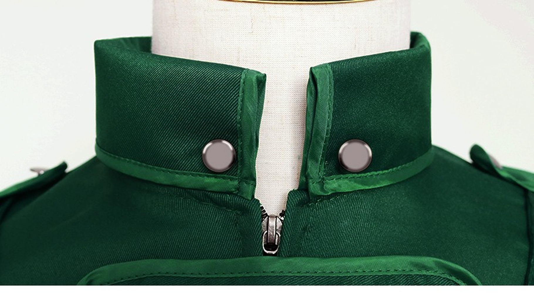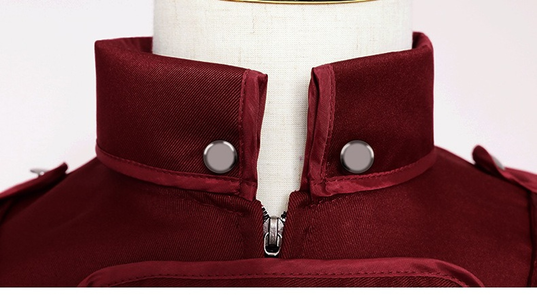 • Long sleeve, knee length coat, stand collar.