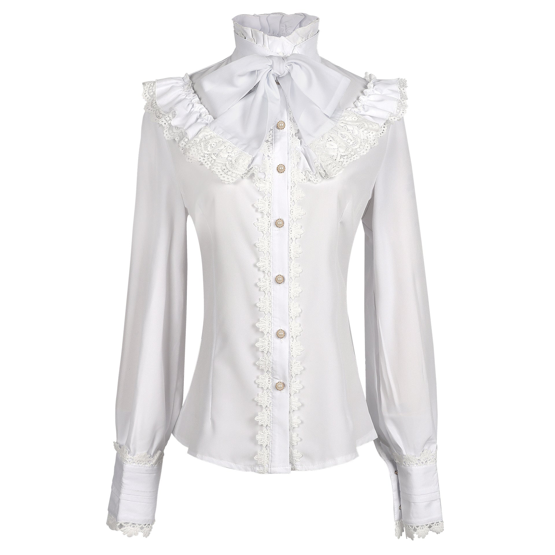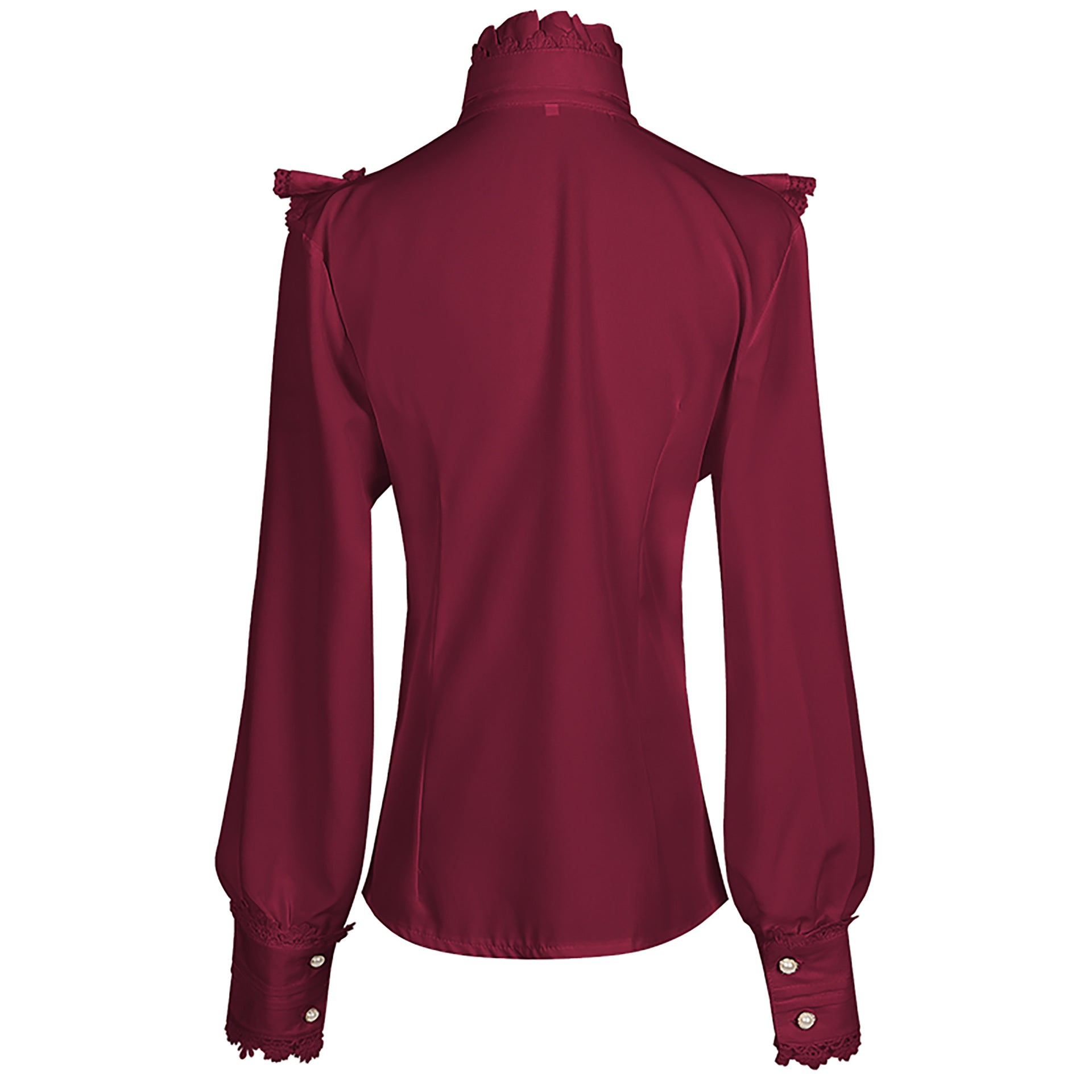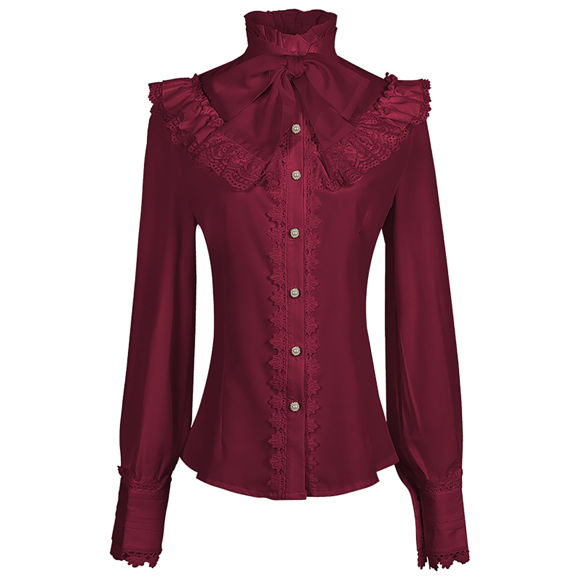 Victorian Shirt Women's Gothic Shirt Vintage Long Sleeve Lotus Pleated Top