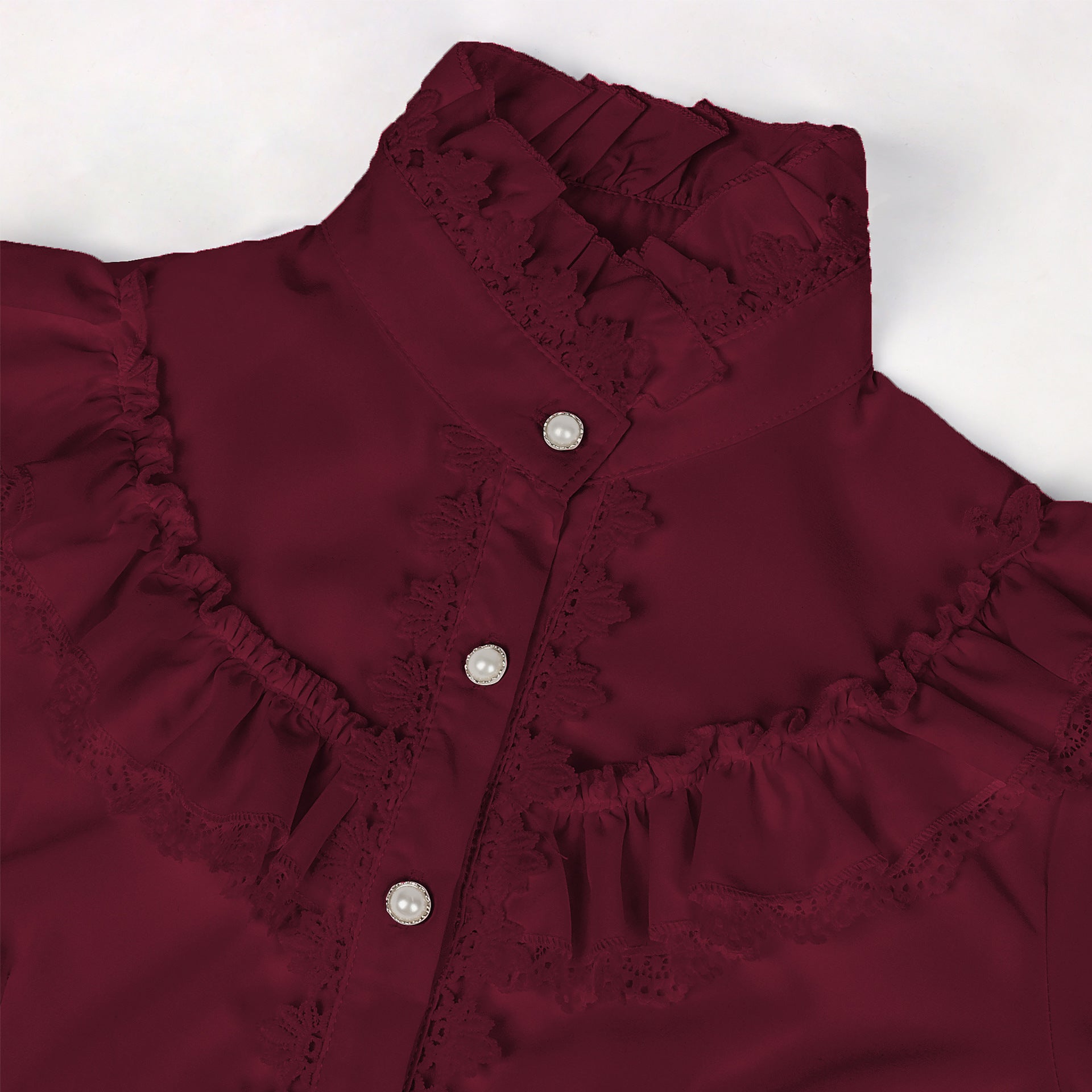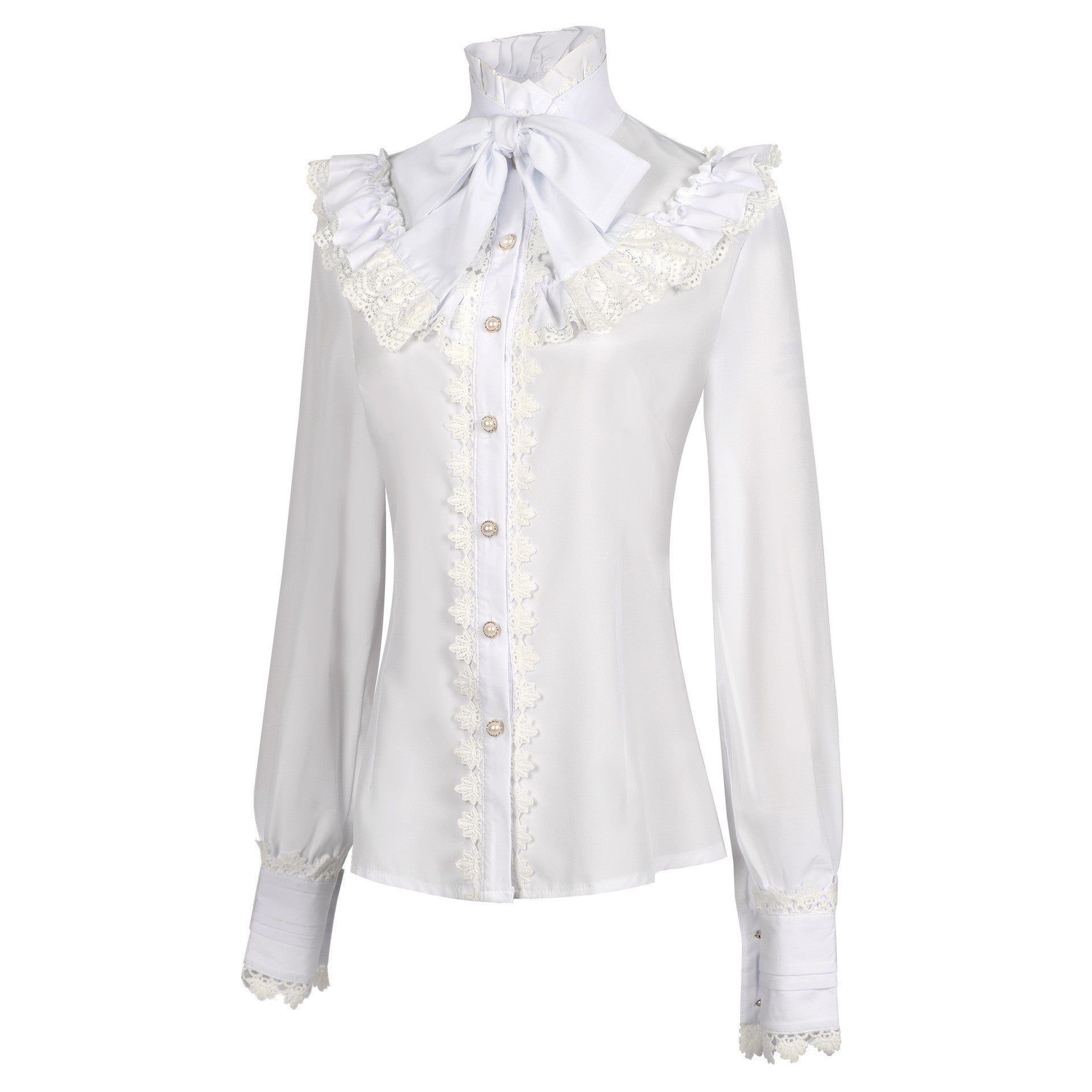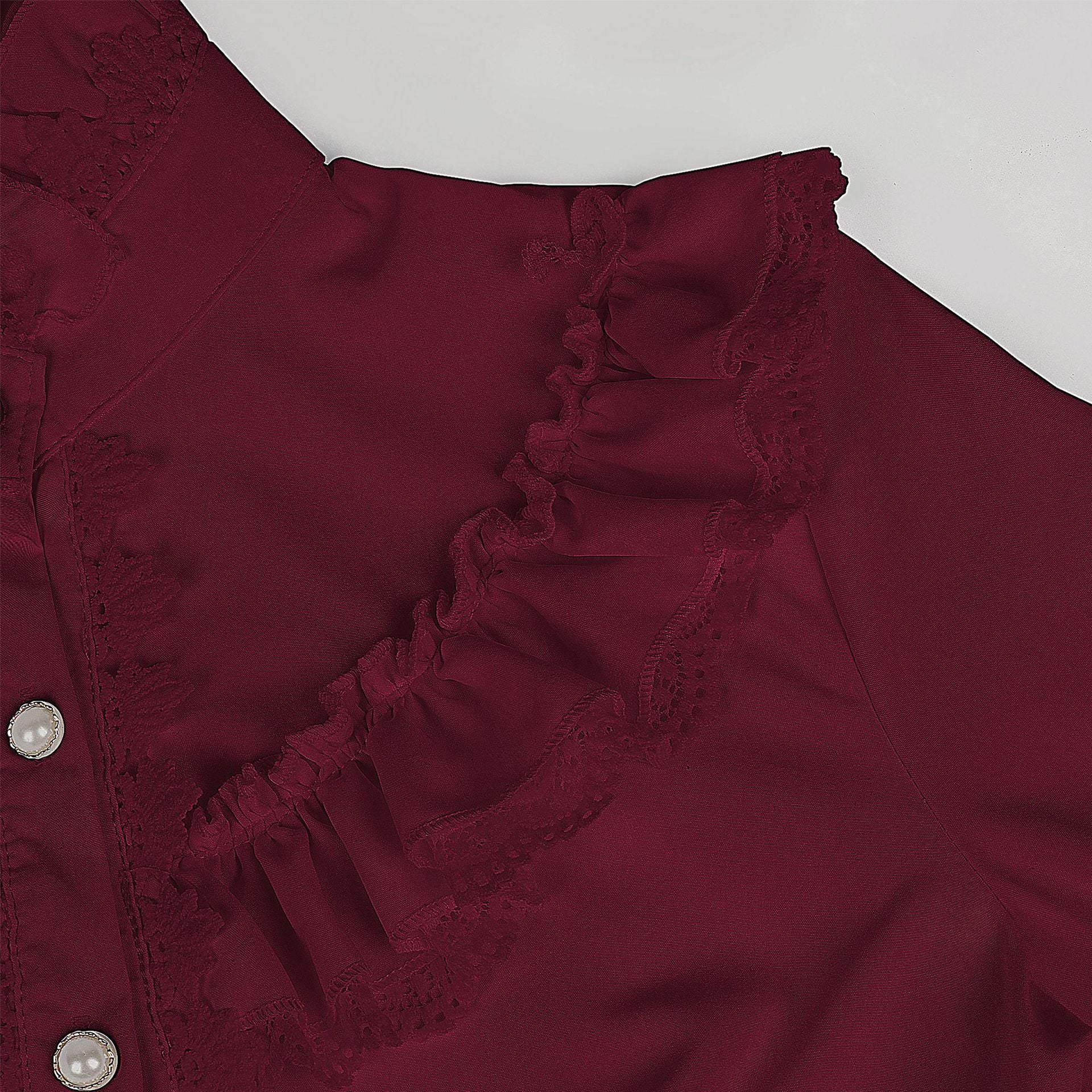 Victorian Shirt Women's Gothic Shirt Vintage Long Sleeve Lotus Pleated Top