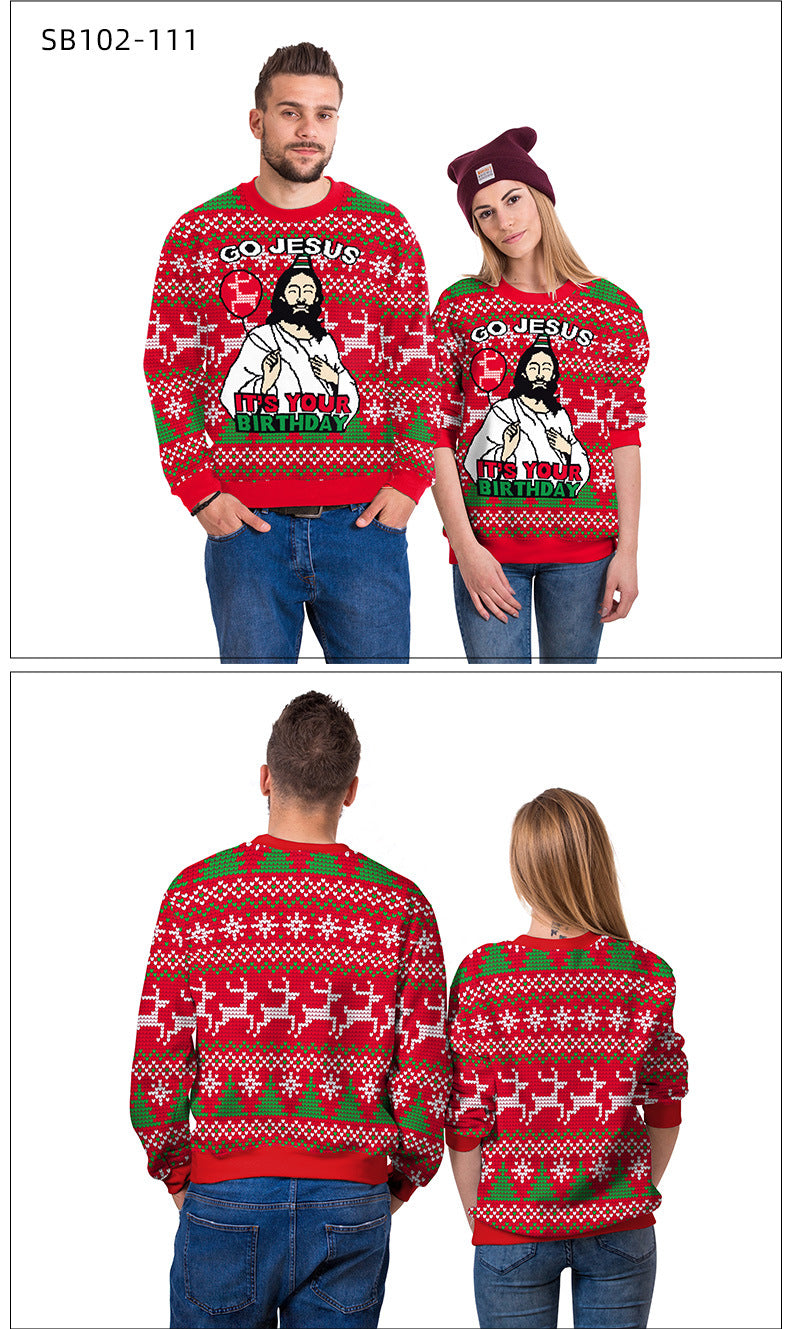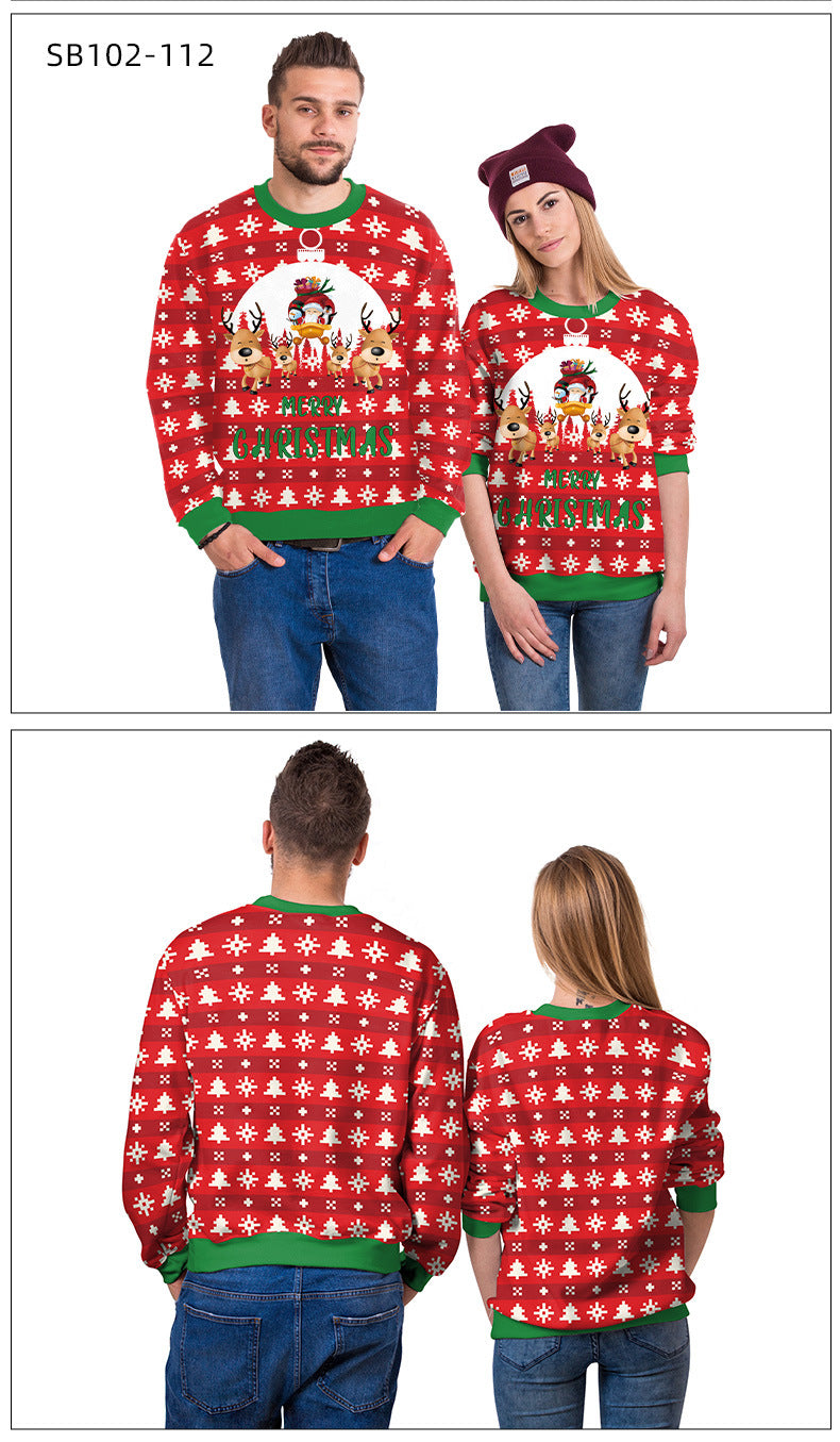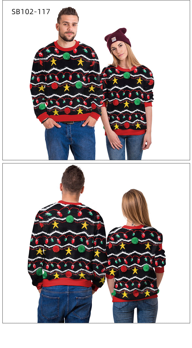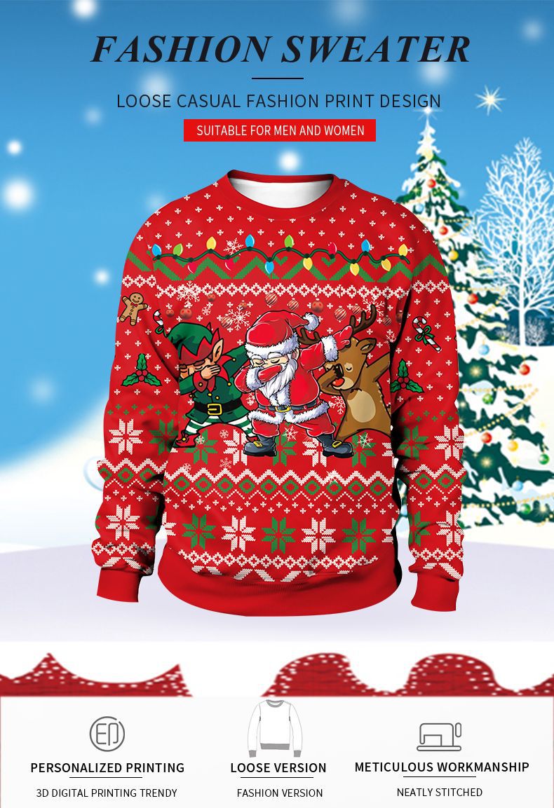 Xmas Ugly Shirt Digital Print Christmas Crew Neck Sweatshirt Top Couple Wear